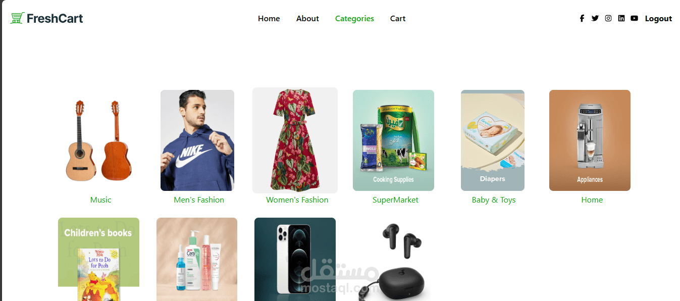 عرض المنتجات، البحث، وإضافة للسلة