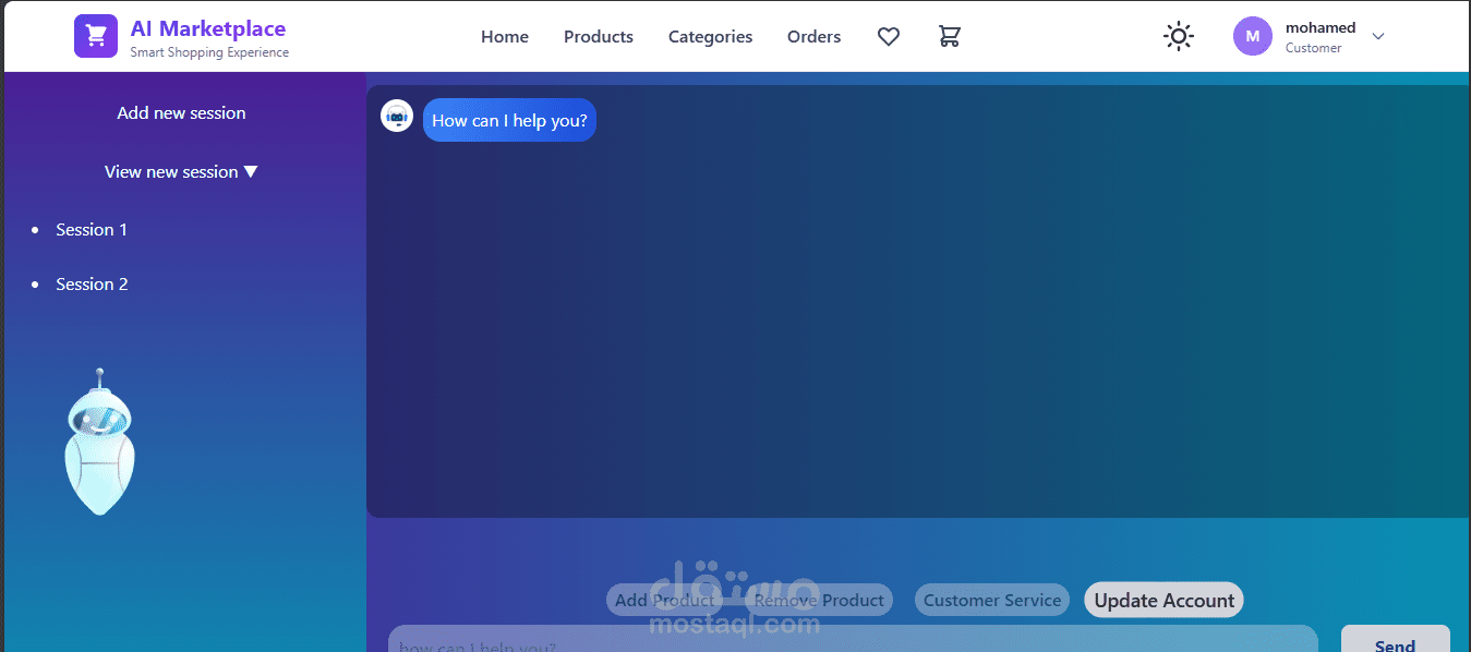 منصة Marketplace ذكية تعتمد على الذكاء الاصطناعي لتحسين تجربة التسوق وخدمة العملاء.