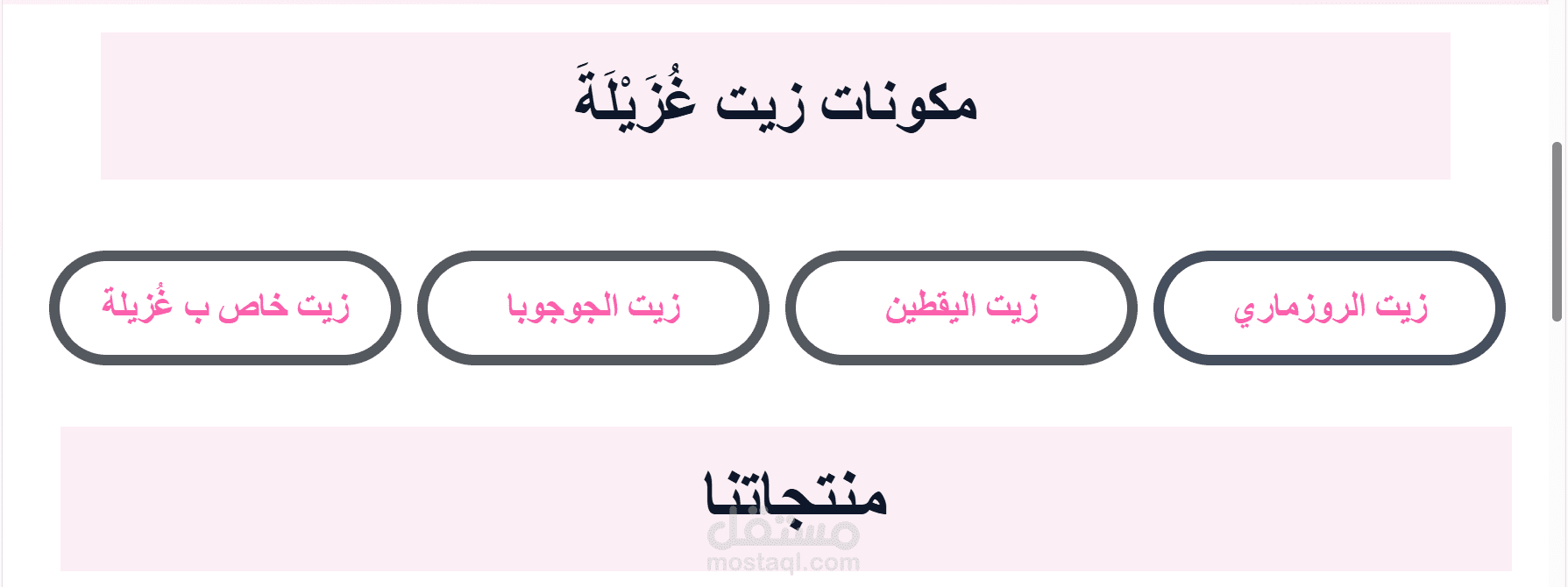 عرض مكوّنات الزيت (الروزماري – اليقطين – الجوجوبا – خلطة غُزَيْلَةَ الخاصة)