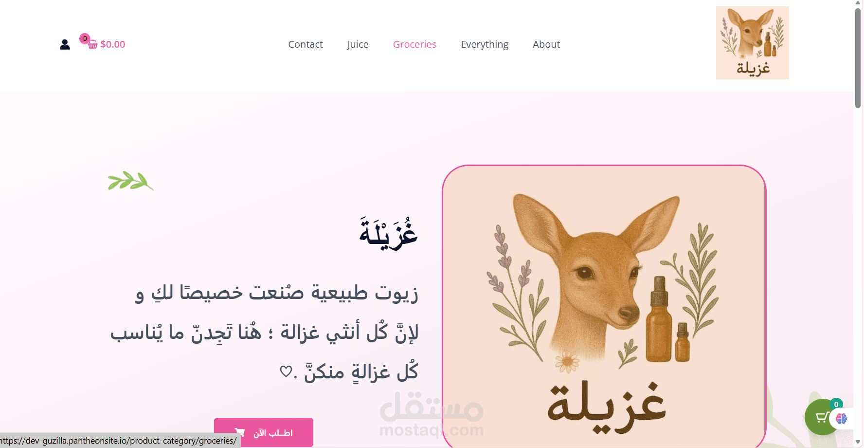 تصميم واجهة أنثوية متناسقة مع هوية براند غُزَيْلَةَ