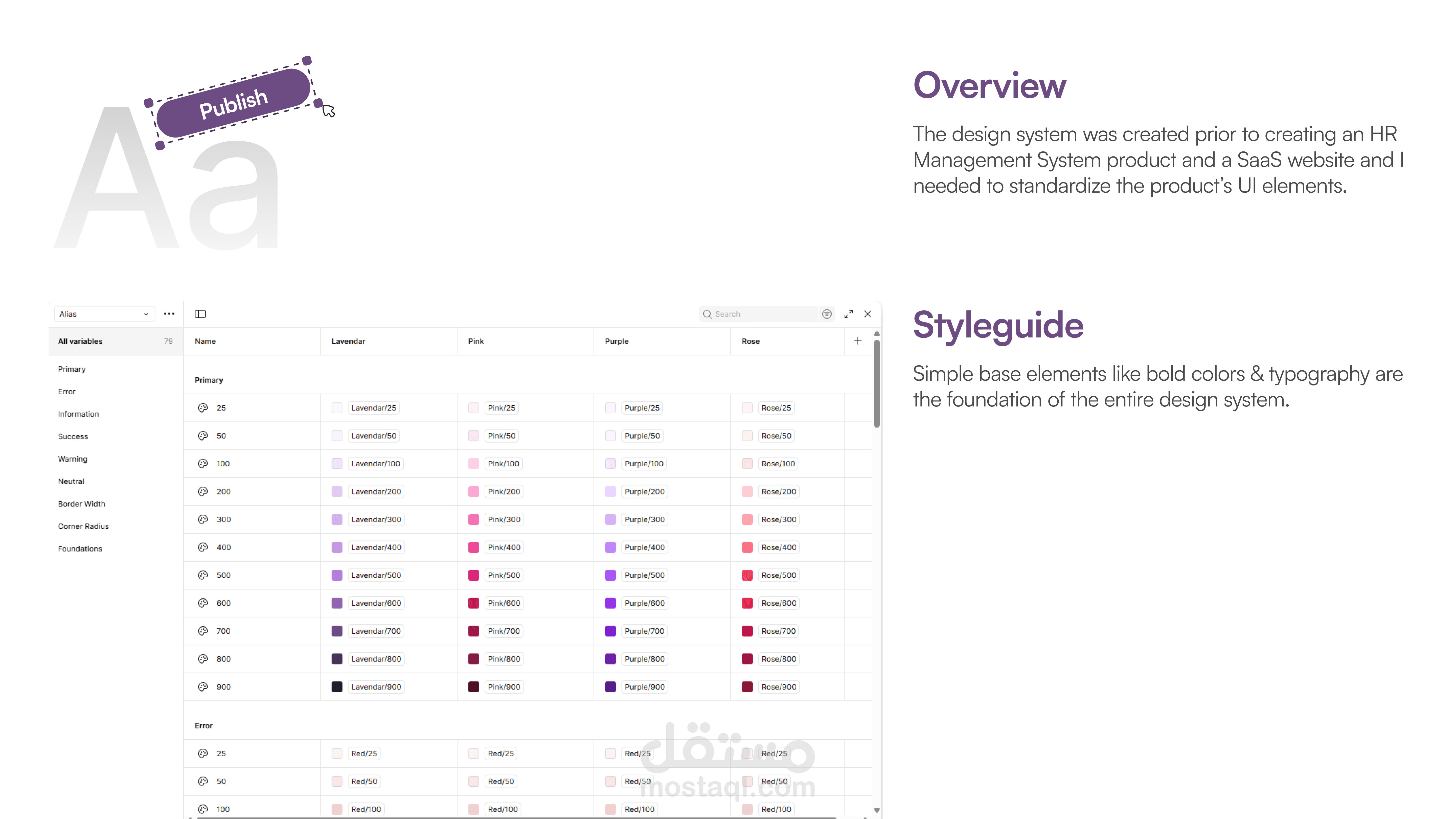 The design system was created prior to creating an HR Management System product and a SaaS website and I needed to standardize the product's UI elements.