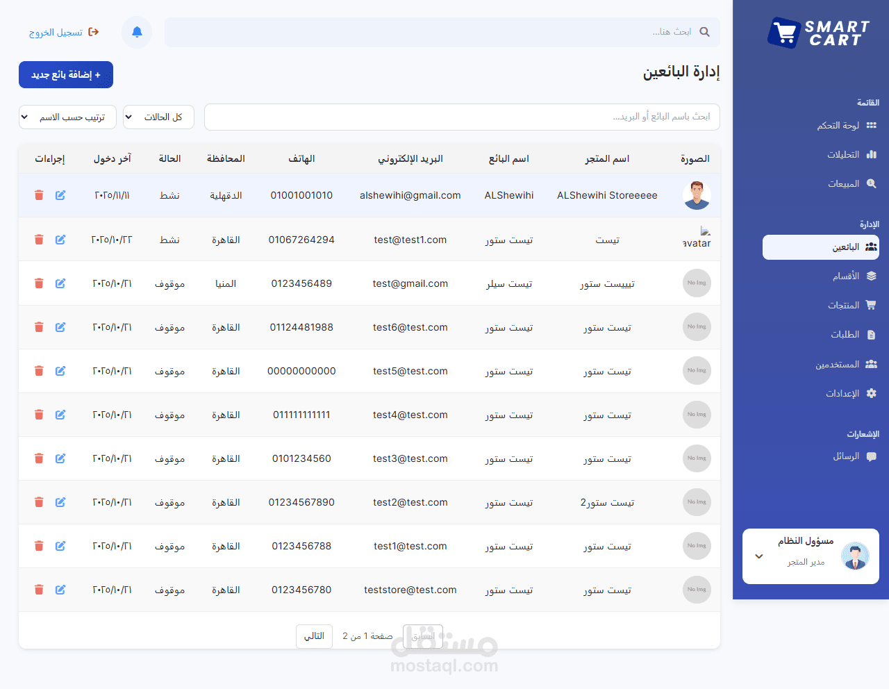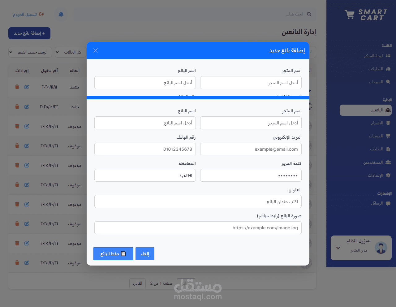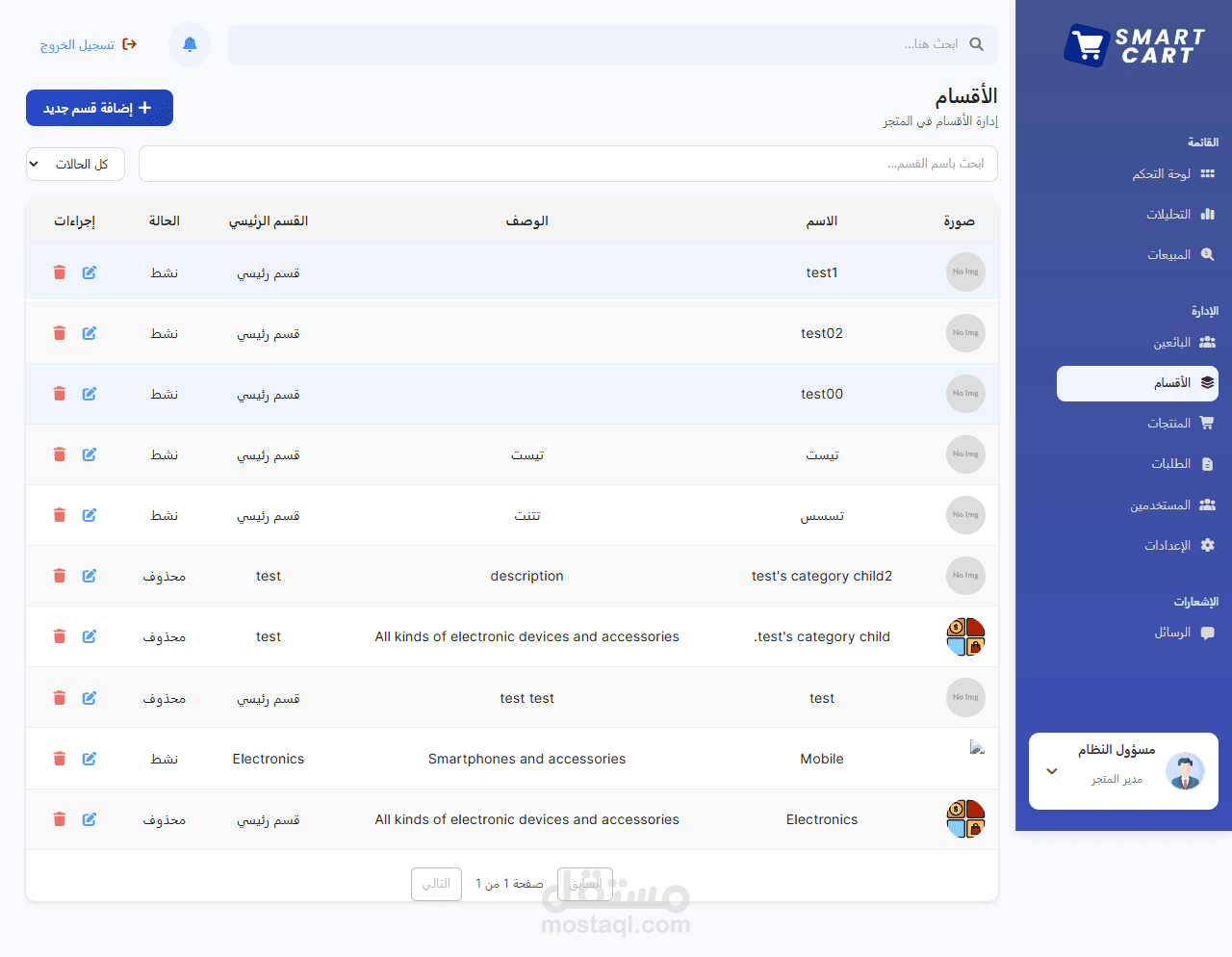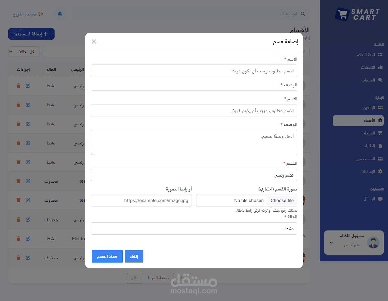 - نظام سلة مشتريات (إضافة / حذف / تحديث)