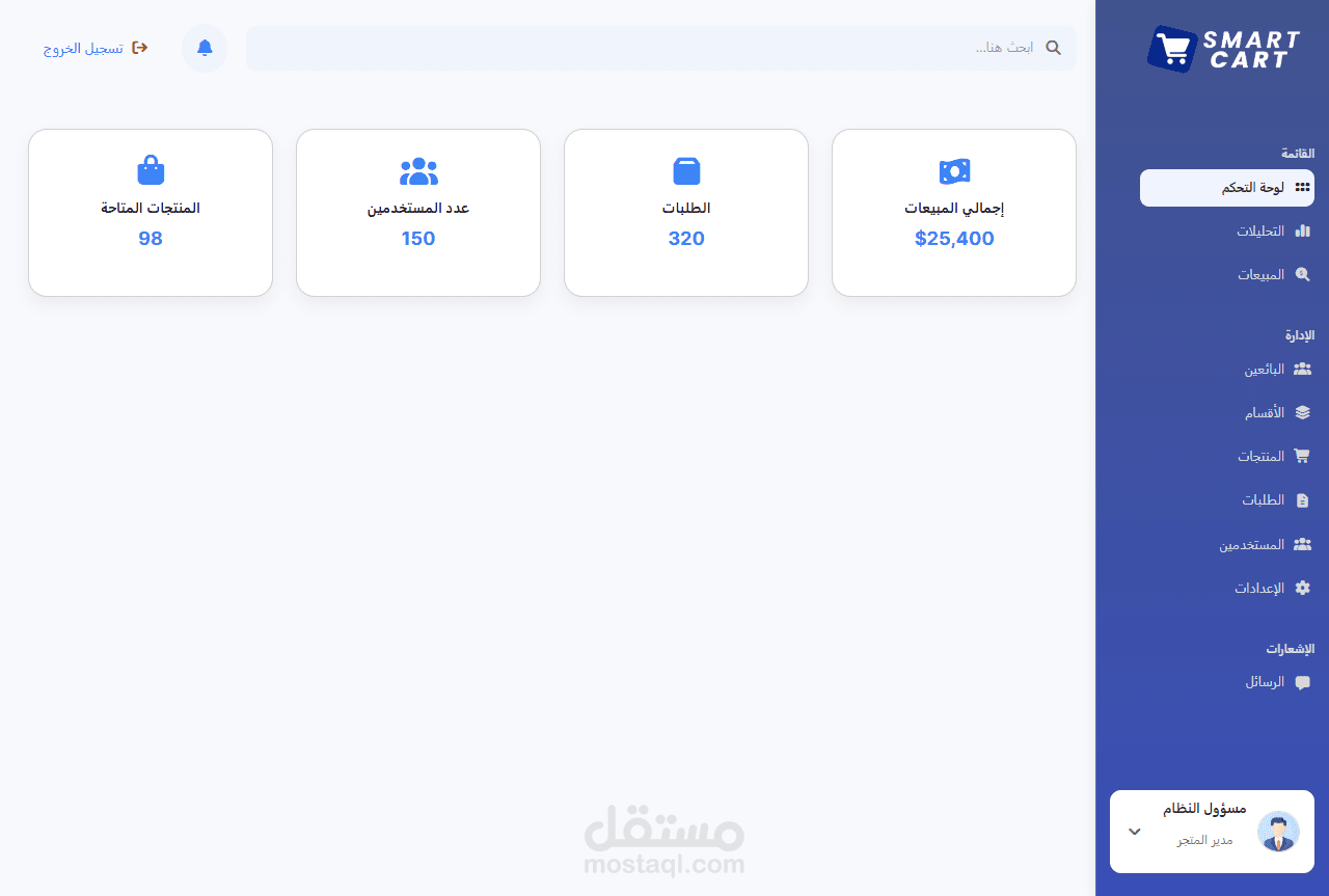 - عرض المنتجات وإدارتها (واجهة فقط)