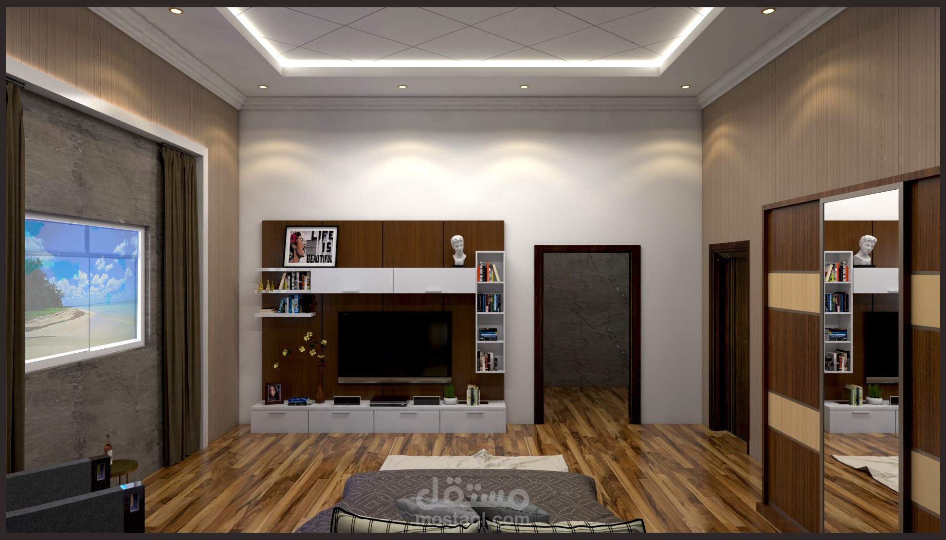 تصميم ديكور لعميل من مدينة ابو ظبي يشمل تصميم ديكور لغرفة نوم , مساحة العمل 23 متر مربع, تم انجاز هذا المشروع على برنامج الاسكتش اب