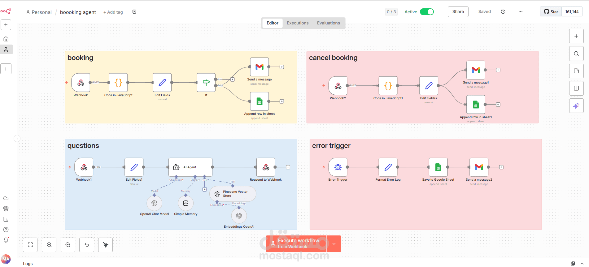 ولو السؤال متكرر، بيستفيد من الـ Memory و Vector Store علشان يجاوب أدق وأسرع