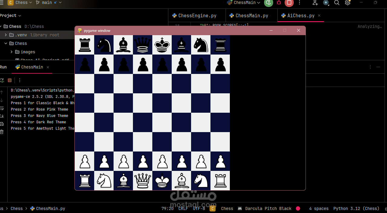 لعبة شطرنج قابلة للعب باستخدام Pygame