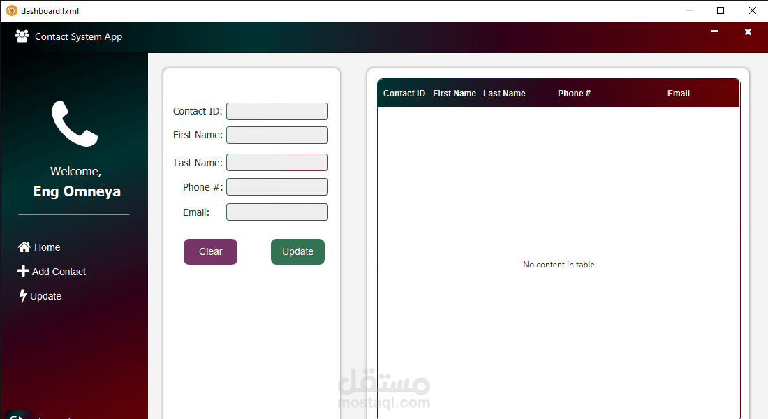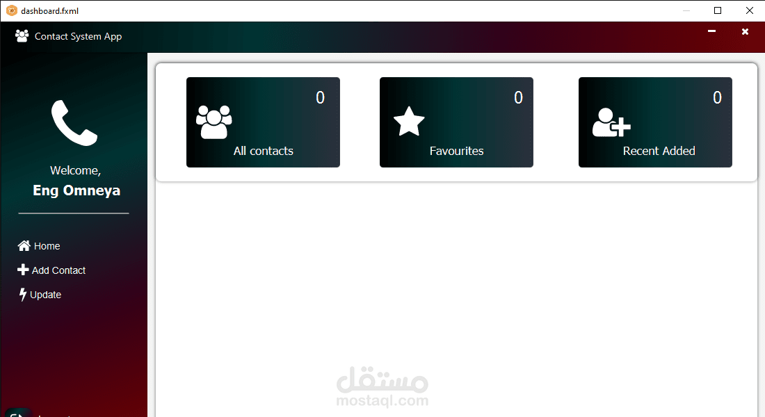 تطبيق سطح المكتب الوظيفي لإدارة جهات الاتصال هو تطبيق Desktop مبني باستخدام JavaFX، يهدف إلى إدارة جهات الاتصال الشخصية والمهنية بشكل عملي وفعّال. يوفر التطبيق واجهة سهلة الاستخدام مع الميزات التالية: