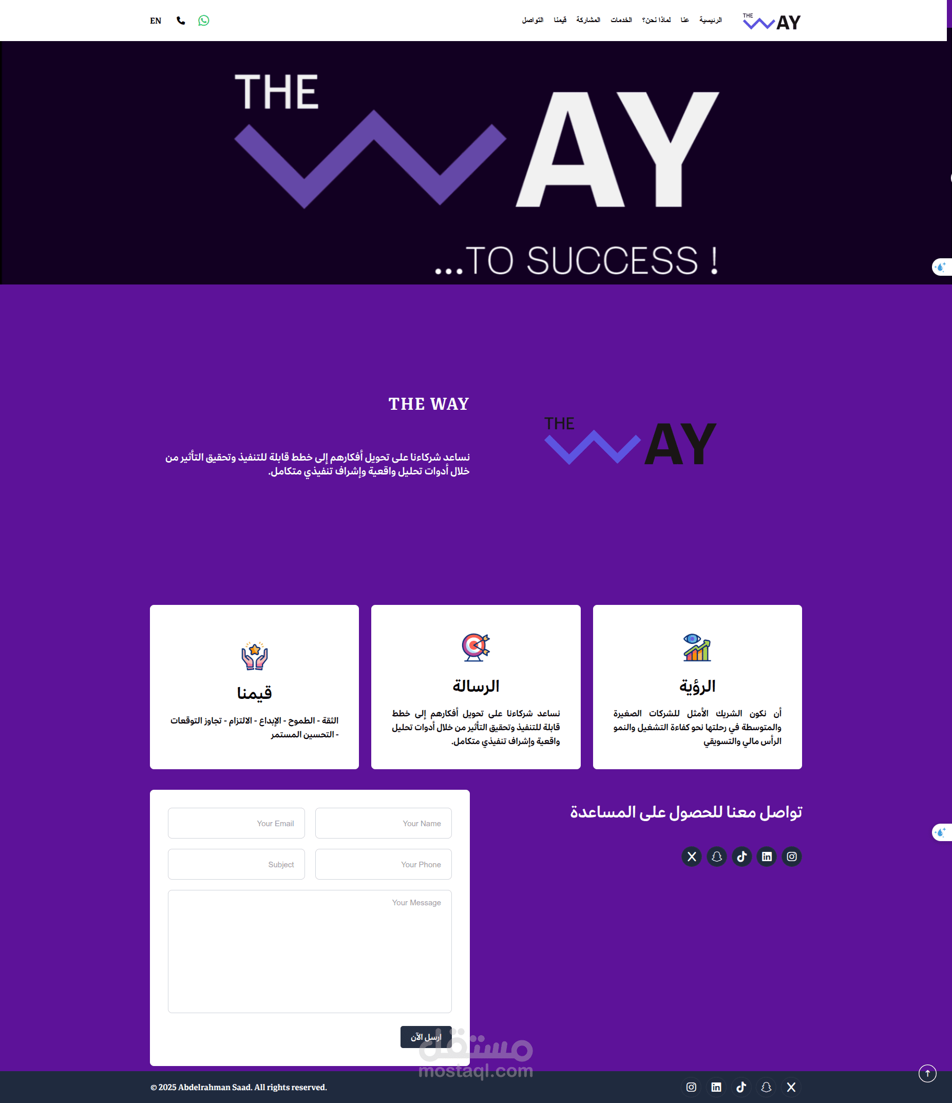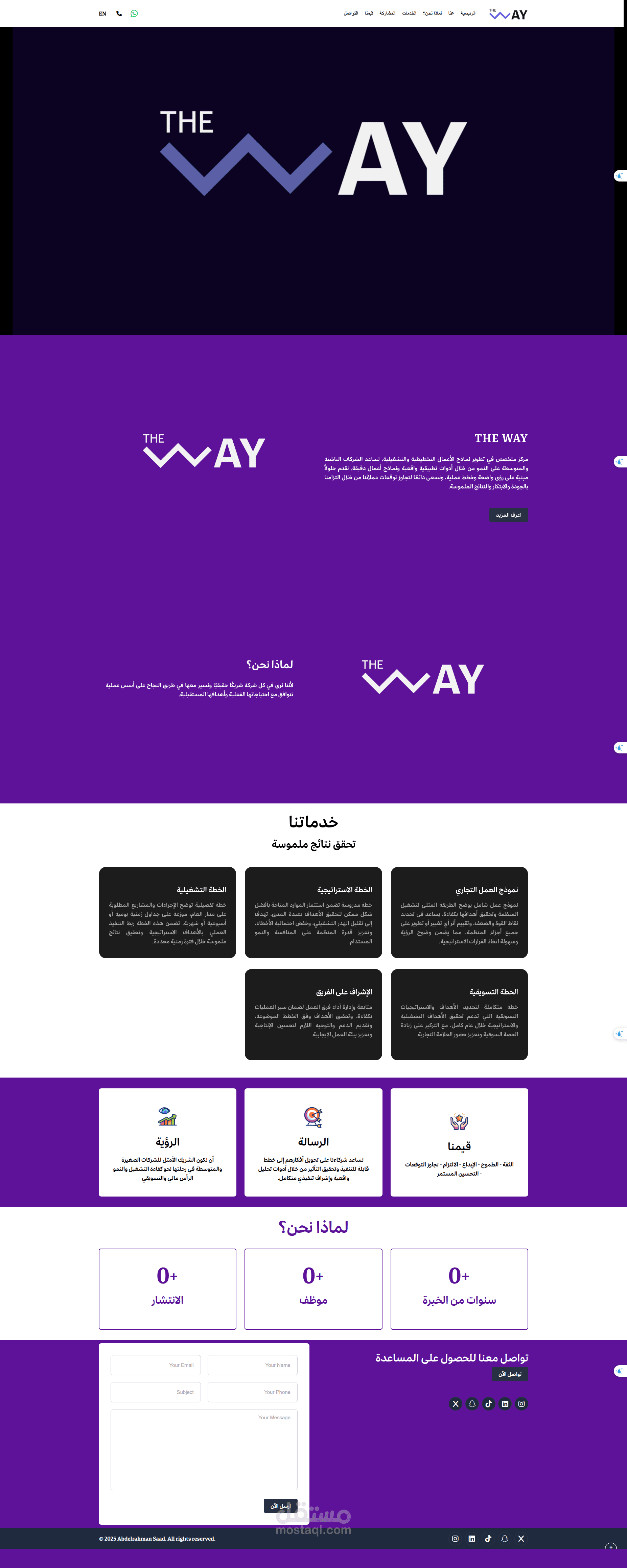 The Way هو مشروع Web متكامل لشركة سعودية، يهدف إلى تقديم حضور رقمي احترافي يعكس هوية الشركة ويخدم عملاءها بكفاءة.