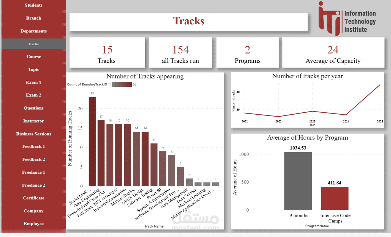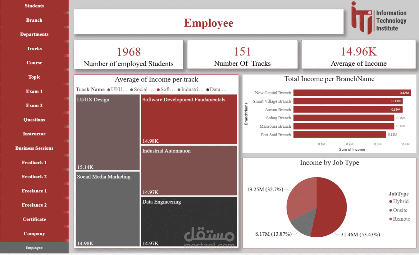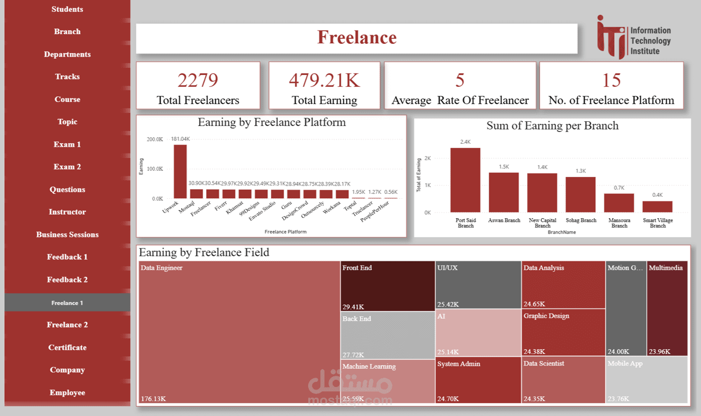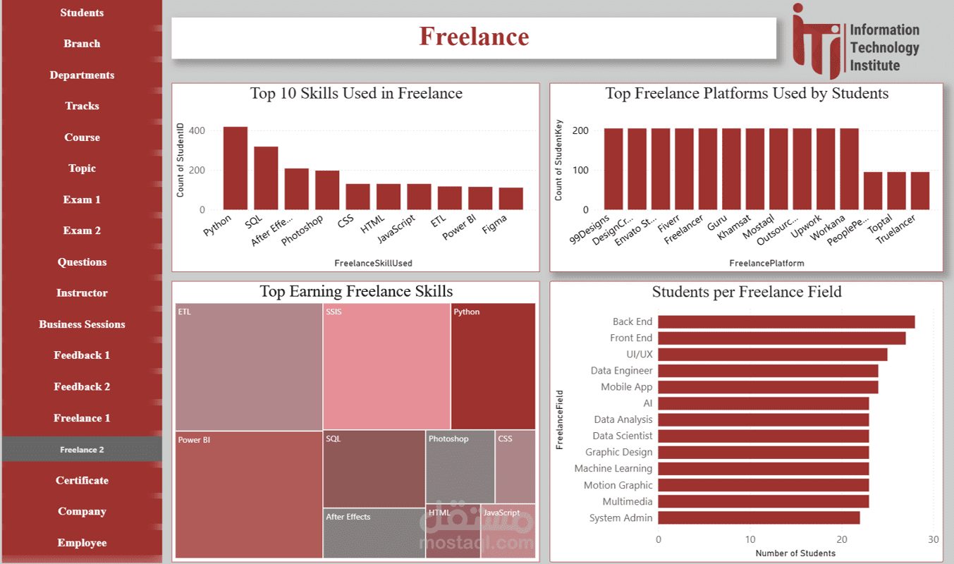 Freelance Dashboard: متابعة أنشطة الطلاب في العمل الحر بعد التخرج وتأثيرها على التقييم العام.