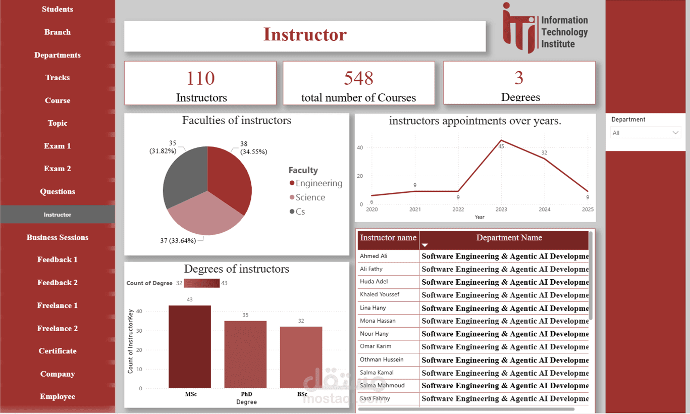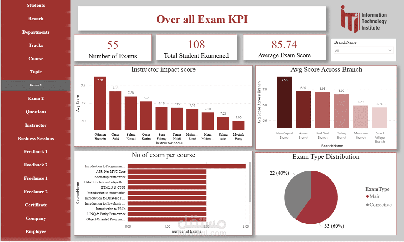 Instructor Dashboard: تقييم أداء المدربين وتأثيرهم على نتائج الطلاب.