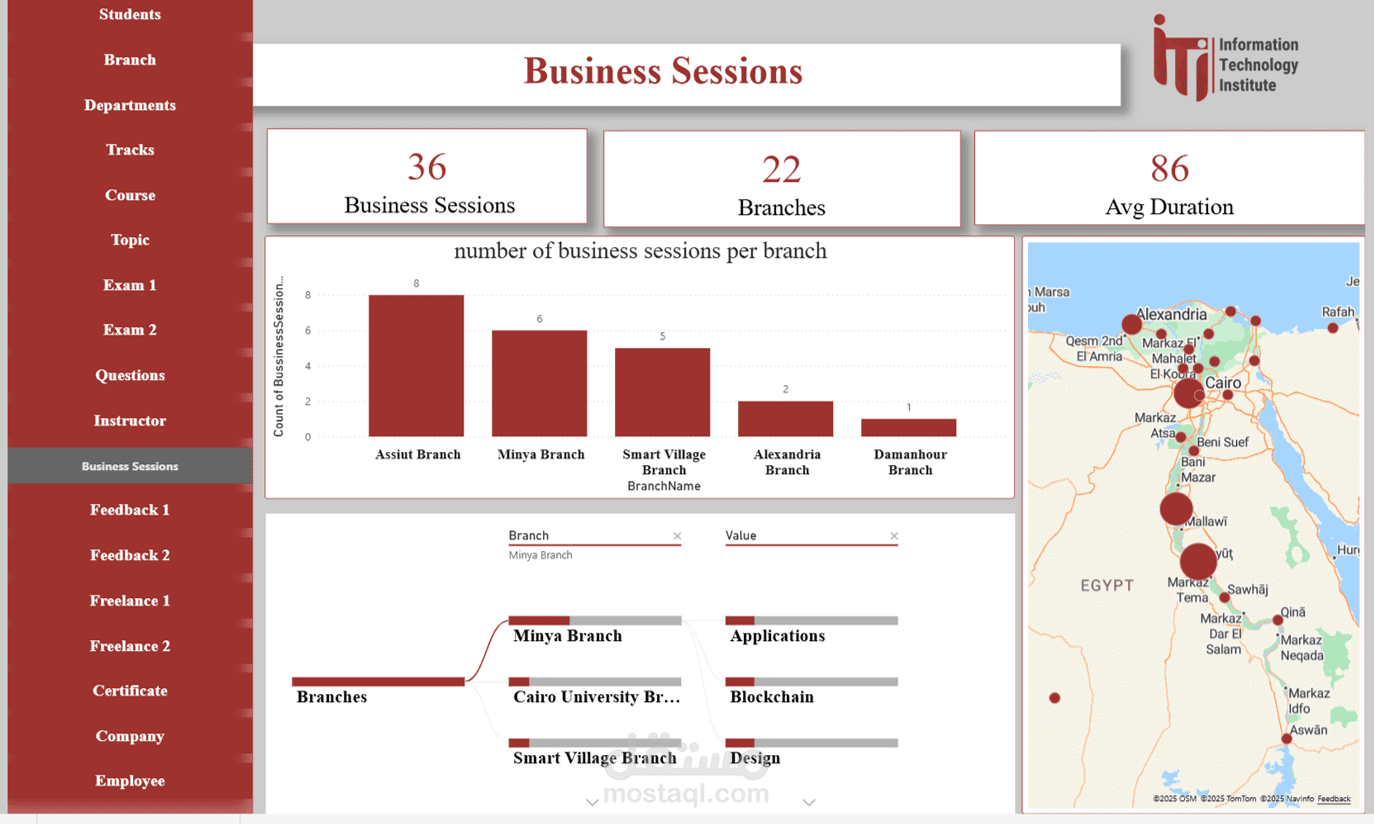 قمت انا وزملائي بتصميم وبناء Dashboards تفاعلية باستخدام Power BI لتحليل أداء الامتحانات والطلاب، مع تحويل البيانات الخام إلى مؤشرات أداء واضحة (KPIs) وInsights عملية تساعد الإدارة على تقييم النتائج، اكتشاف نقاط الضعف، وتحسين جودة العملية التعليمية.
