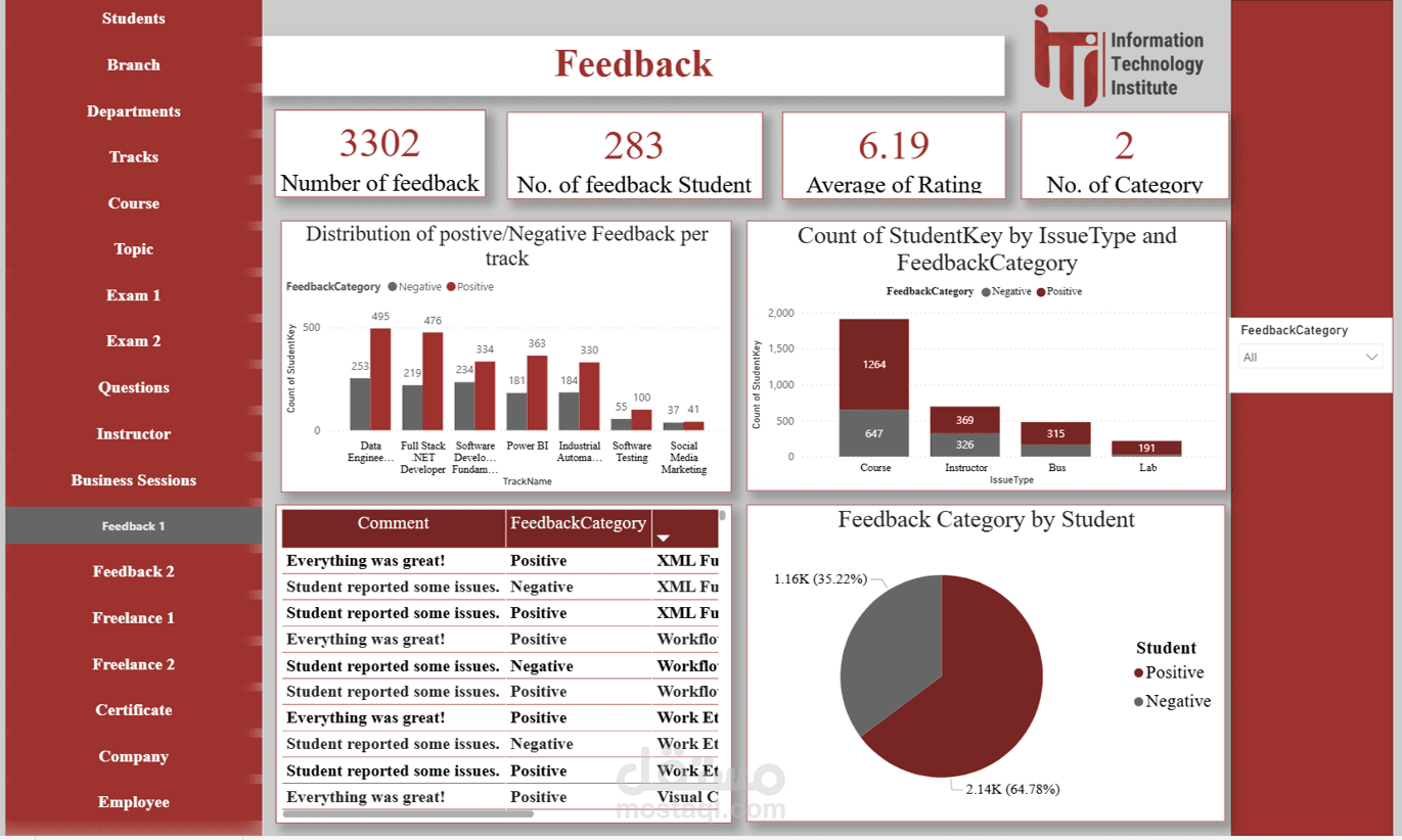 Feedback Dashboard: تحليل آراء الطلاب وقياس مستوى الرضا لاكتشاف فرص التحسين.