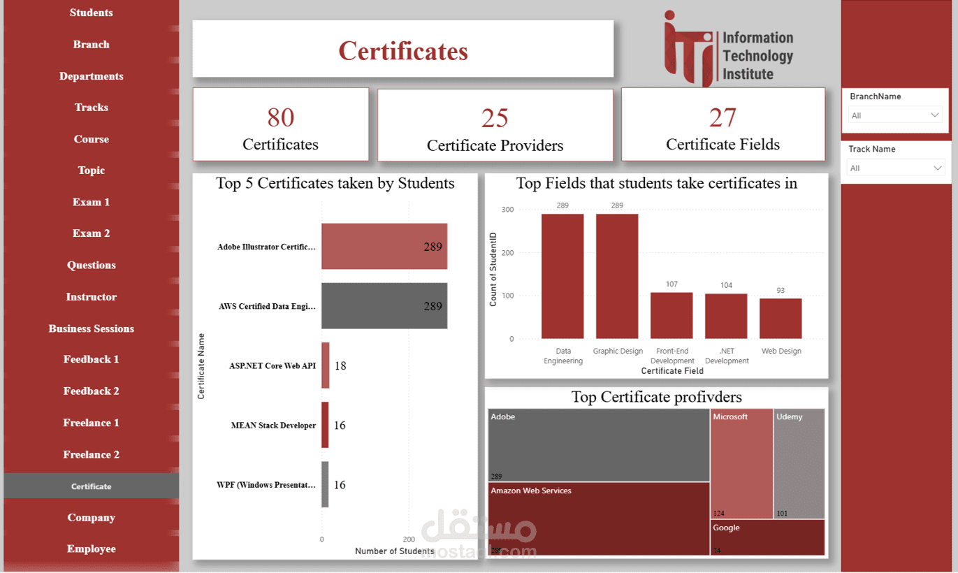 Certification Dashboard: متابعة الشهادات التي حصل عليها الطلاب وتأثيرها على التقييم العام.