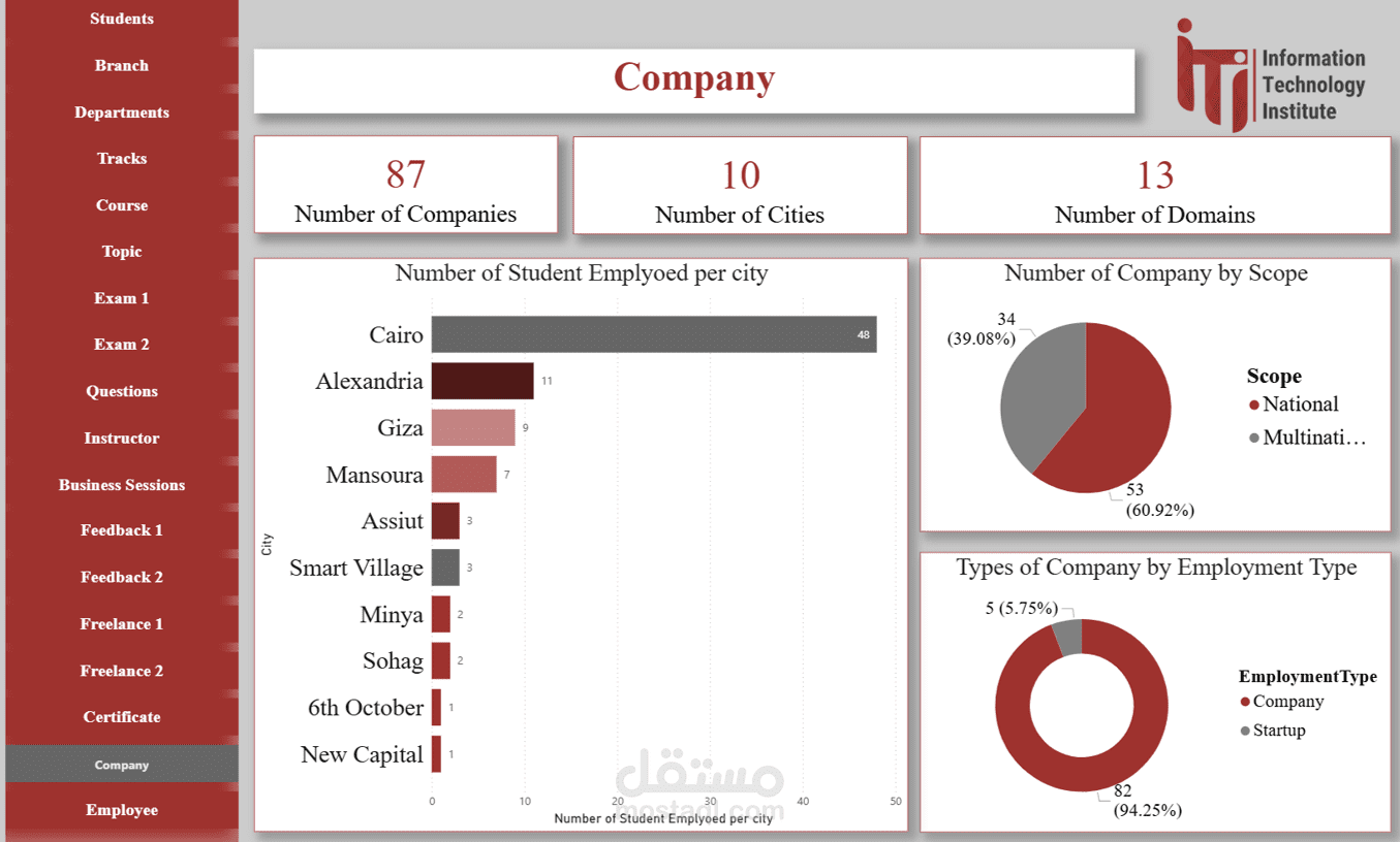 Company Dashboard: تحليل توظيف الطلاب في الشركات بعد التخرج.