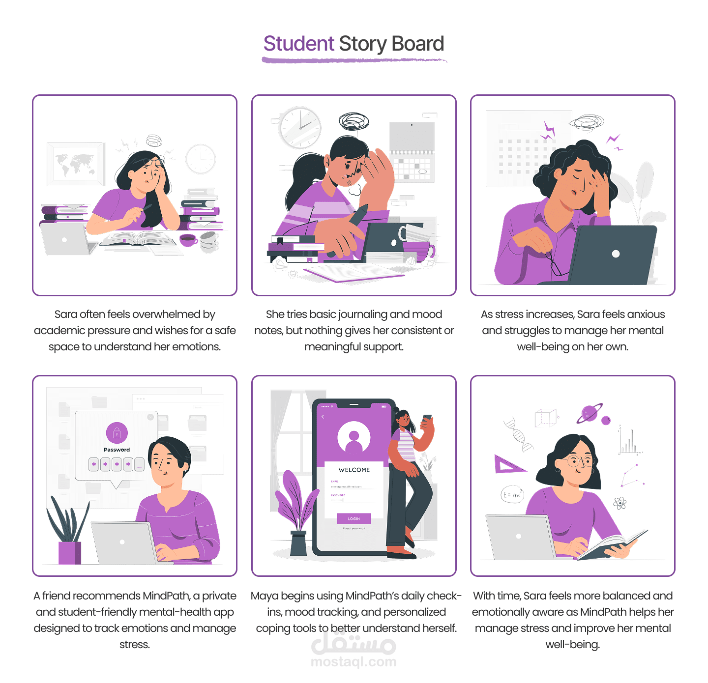 تطبيق للصحة النفسية مخصص للطلاب بيقدم مساحة آمنة وخاصة تساعدهم يتابعوا حالتهم المزاجية يوميًا ويكتشفوا أنماط مشاعرهم من غير خوف من المجتمع