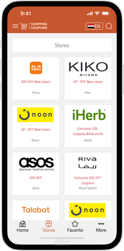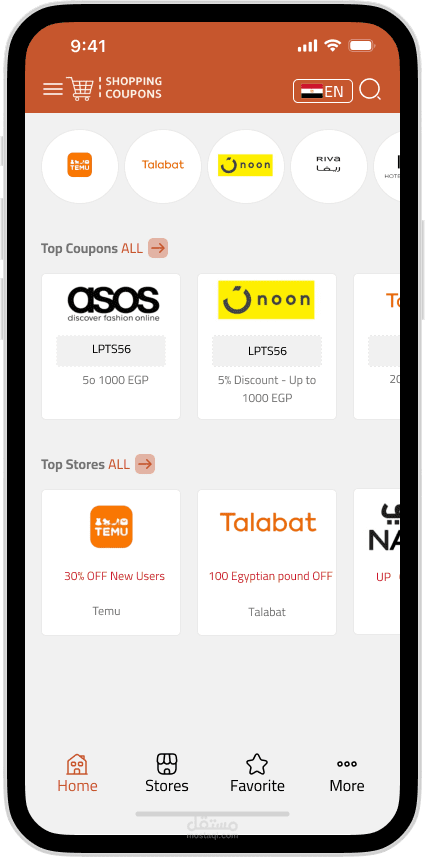 Shopping Coupons عباره عن UI mobile app