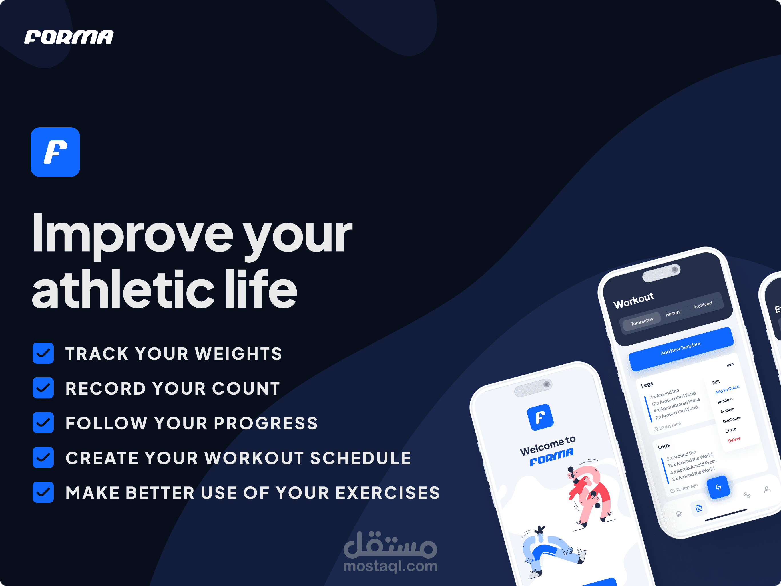 Forma هو تطبيق لتتبع اللياقة البدنية يساعد المستخدمين على متابعة التمارين، قياس التقدم، وتنظيم الأهداف الصحية بسهولة، ليحفّزهم على الاستمرارية وتحقيق أفضل نتائج.