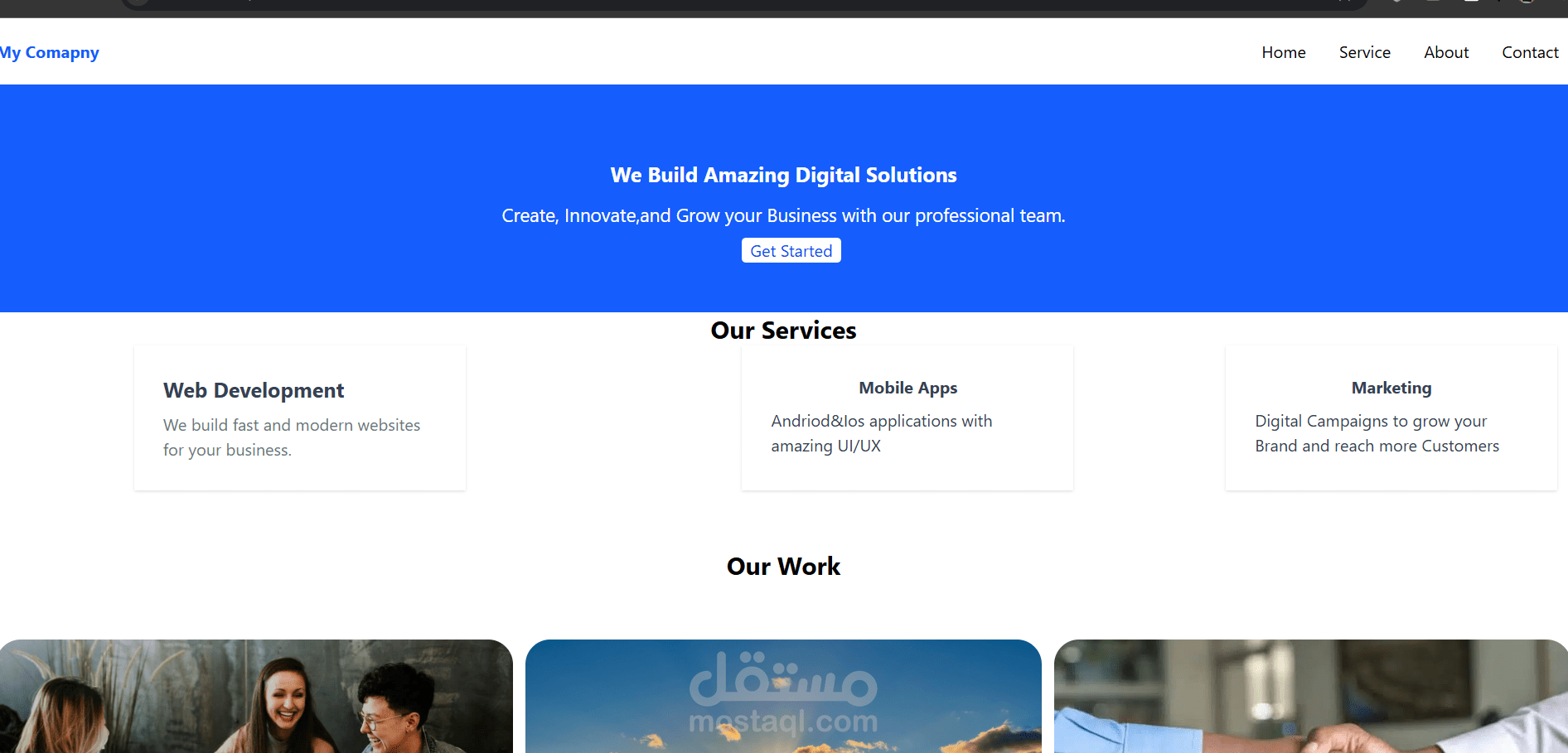 موقع ويب تعريفي (Corporate Website) لشركة بتقدم حلول رقمية متكاملة زي تطوير المواقع، تطبيقات الموبايل، والتسويق الرقمي، بهدف جذب العملاء وعرض خدمات الشركة بشكل احترافي.