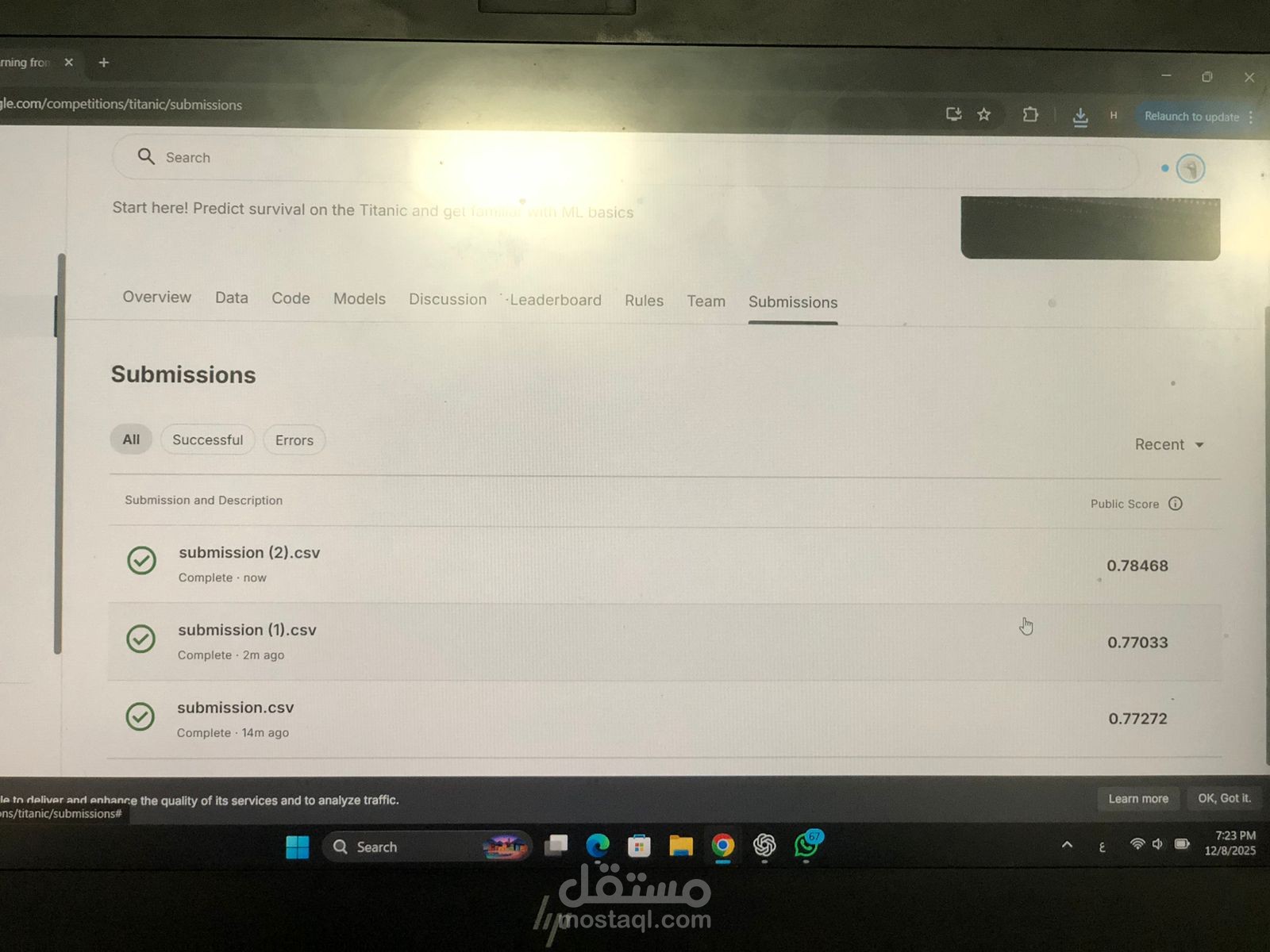 Titanic competition on Kaggle, where I achieved a