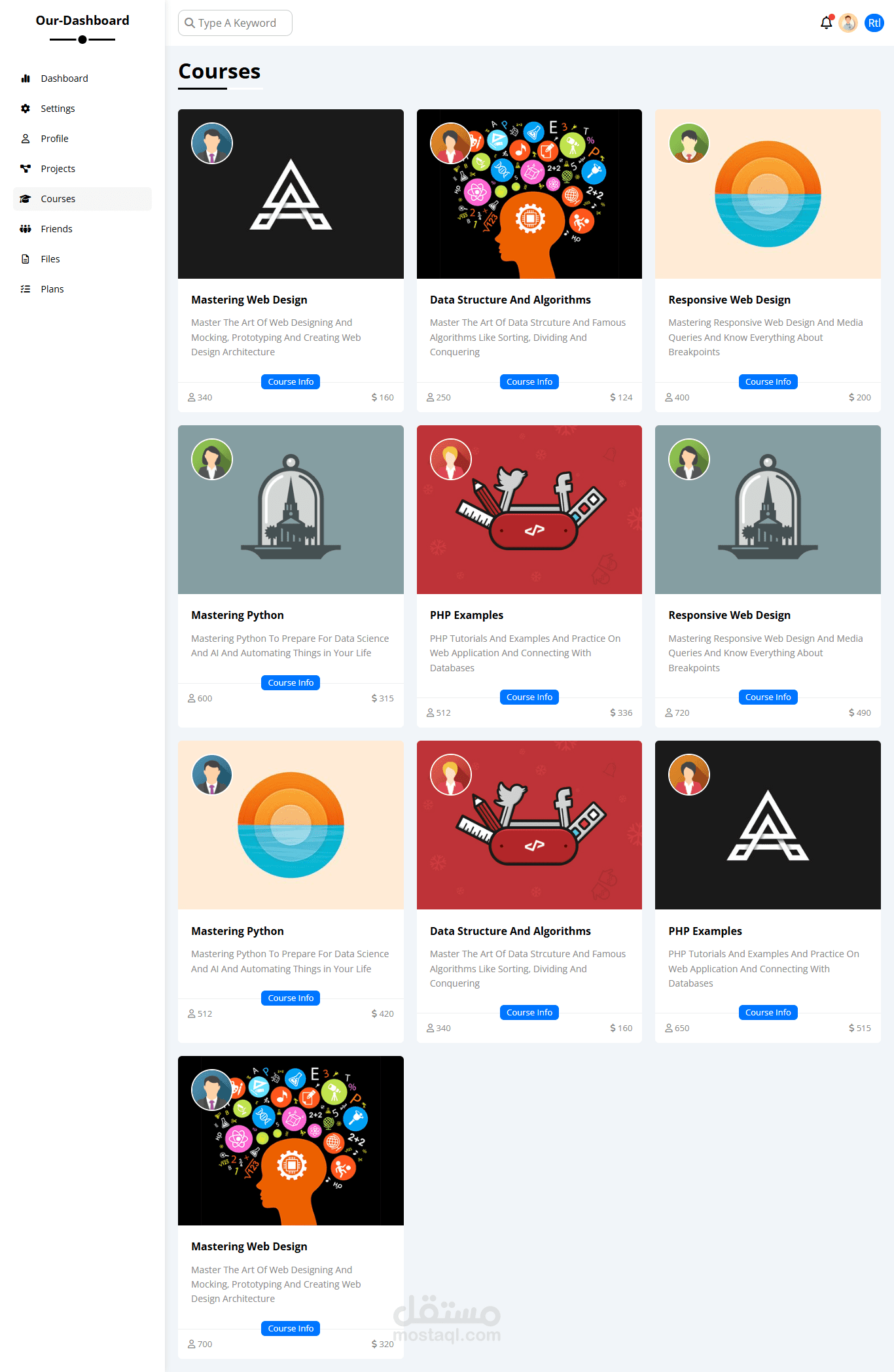 Converted a PSD design template into a fully functional, responsive dashboard with seamless RTL-to-LTR support using JavaScript. Developed a lightweight, modular CSS framework inspired by Bootstrap to improve code reusability and maintainability. Implemented interactive UI elements and ensured cross-browser compatibility for an enhanced user experience.