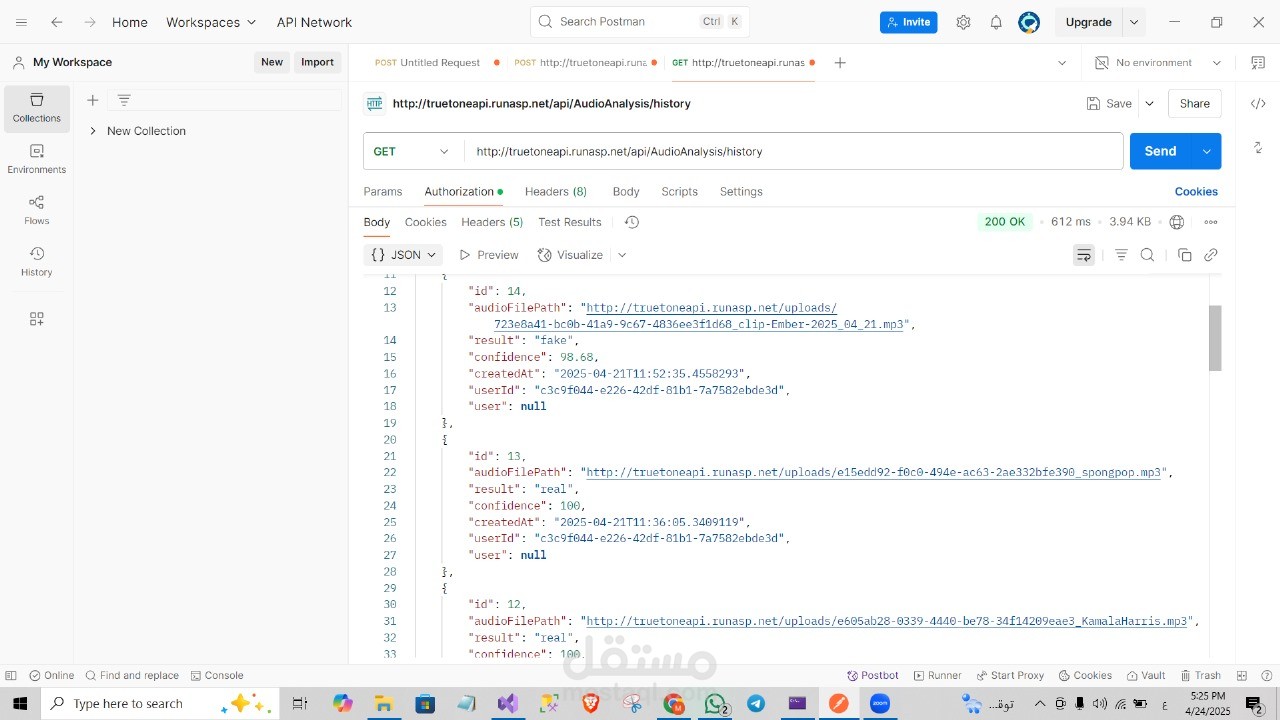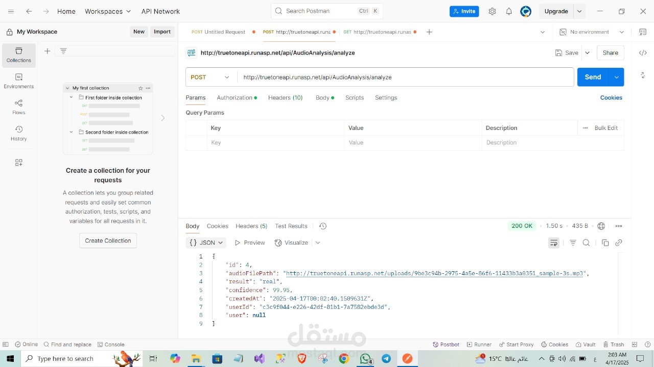 Built a secure and scalable Web API for analyzing audio files as part of my graduation project.