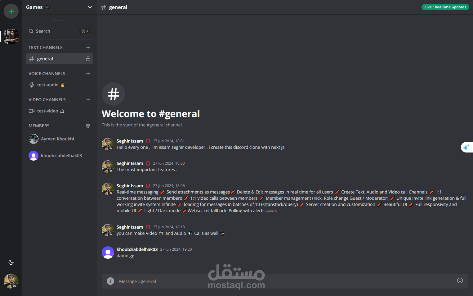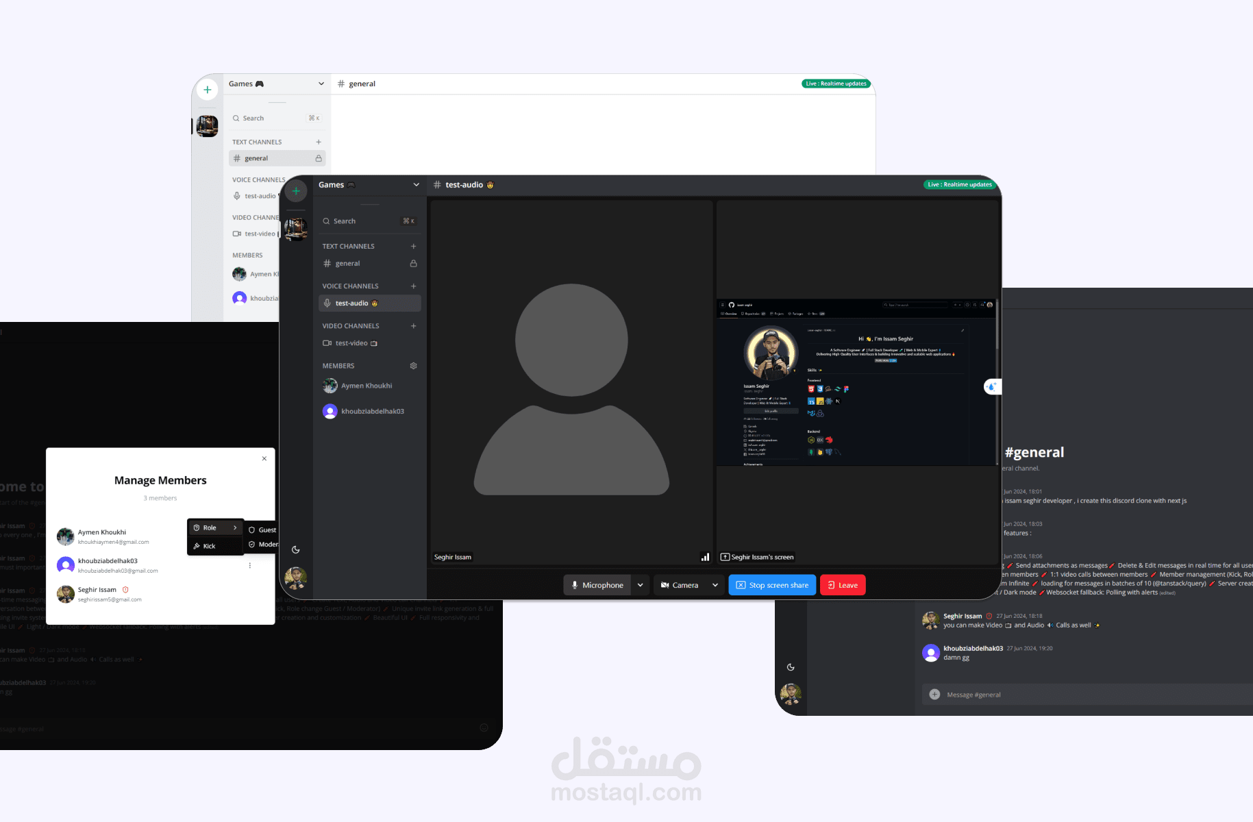 هذا المشروع هو محاكاة لتطبيق Discord، ويوفر حلاً قويًا وقابلًا للتوسع للتواصل في الوقت الحقيقي، مع دعم المكالمات الصوتية، مكالمات الفيديو، والدردشة النصية باستخدام تقنيات حديثة
