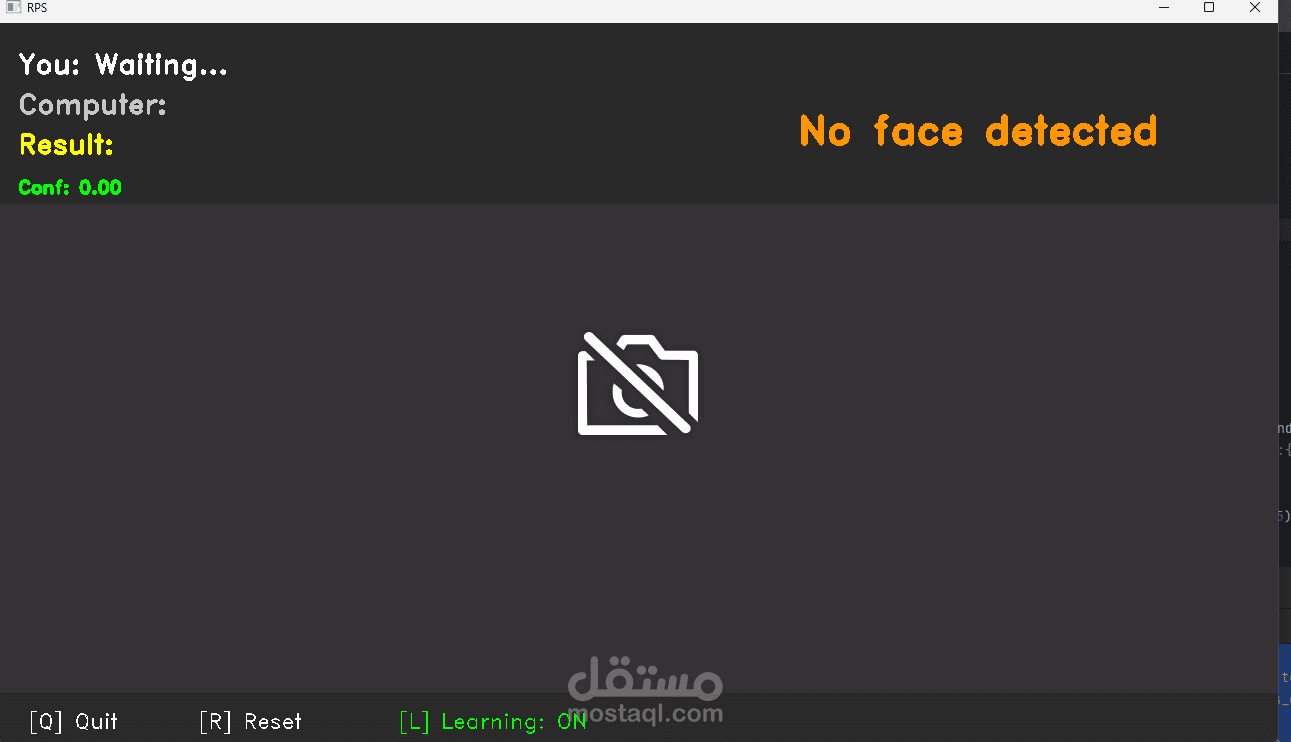 AI-Intelligence_RPS هو تطبيق لعبة حجر–ورقة–مقص مدعوم بالذكاء الاصطناعي يعمل عبر كاميرا الويب. يقوم النظام باكتشاف اليد وتصنيف الإشارة (حجر/ورقة/مقص) باستخدام نموذج تعلم عميق، بالإضافة إلى اكتشاف الوجه والتعرّف عليه لتمييز المستخدمين وتقديم تجربة مخصصة لكل لاعب.
