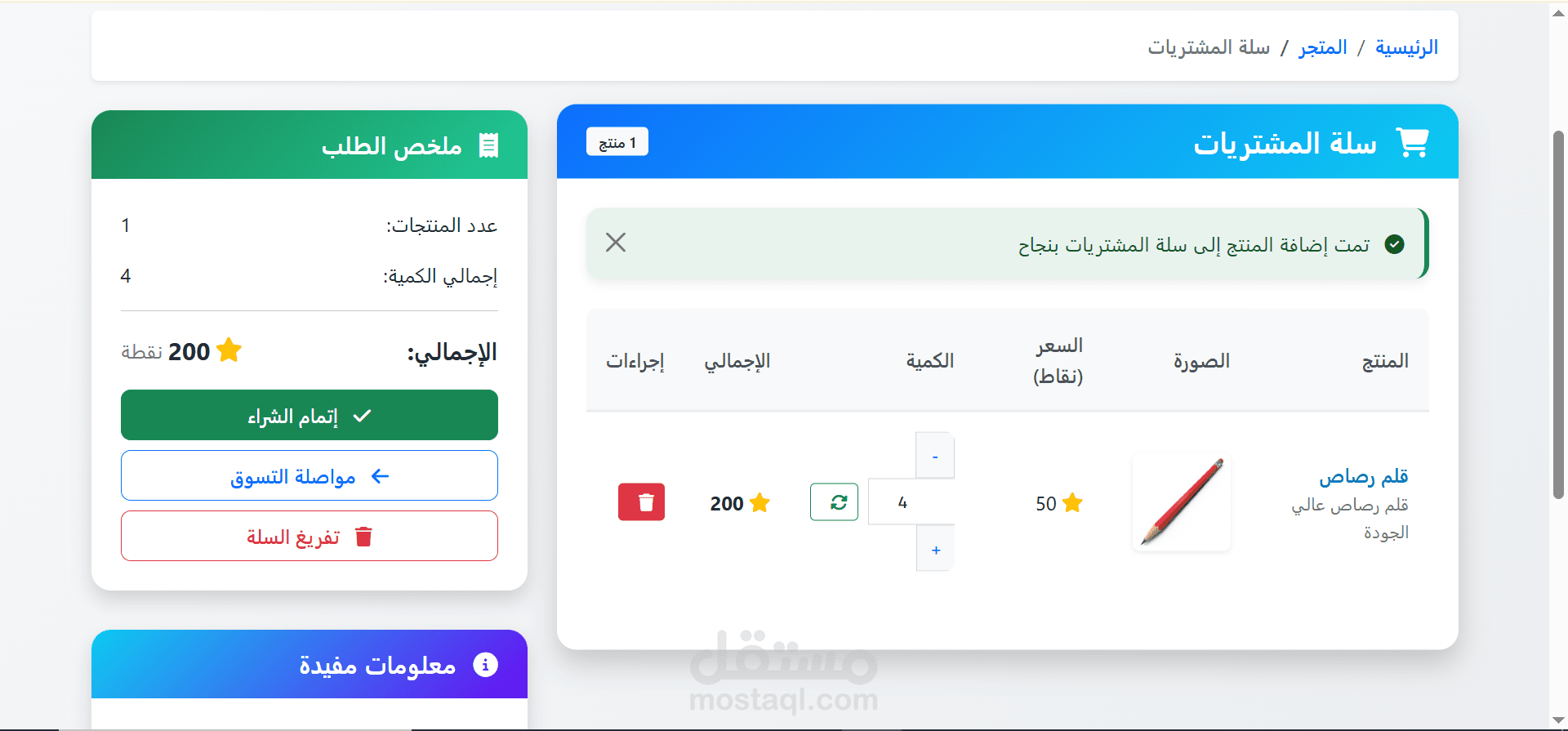 يستخدم النقاط المكتسبة لطلب المنتجات