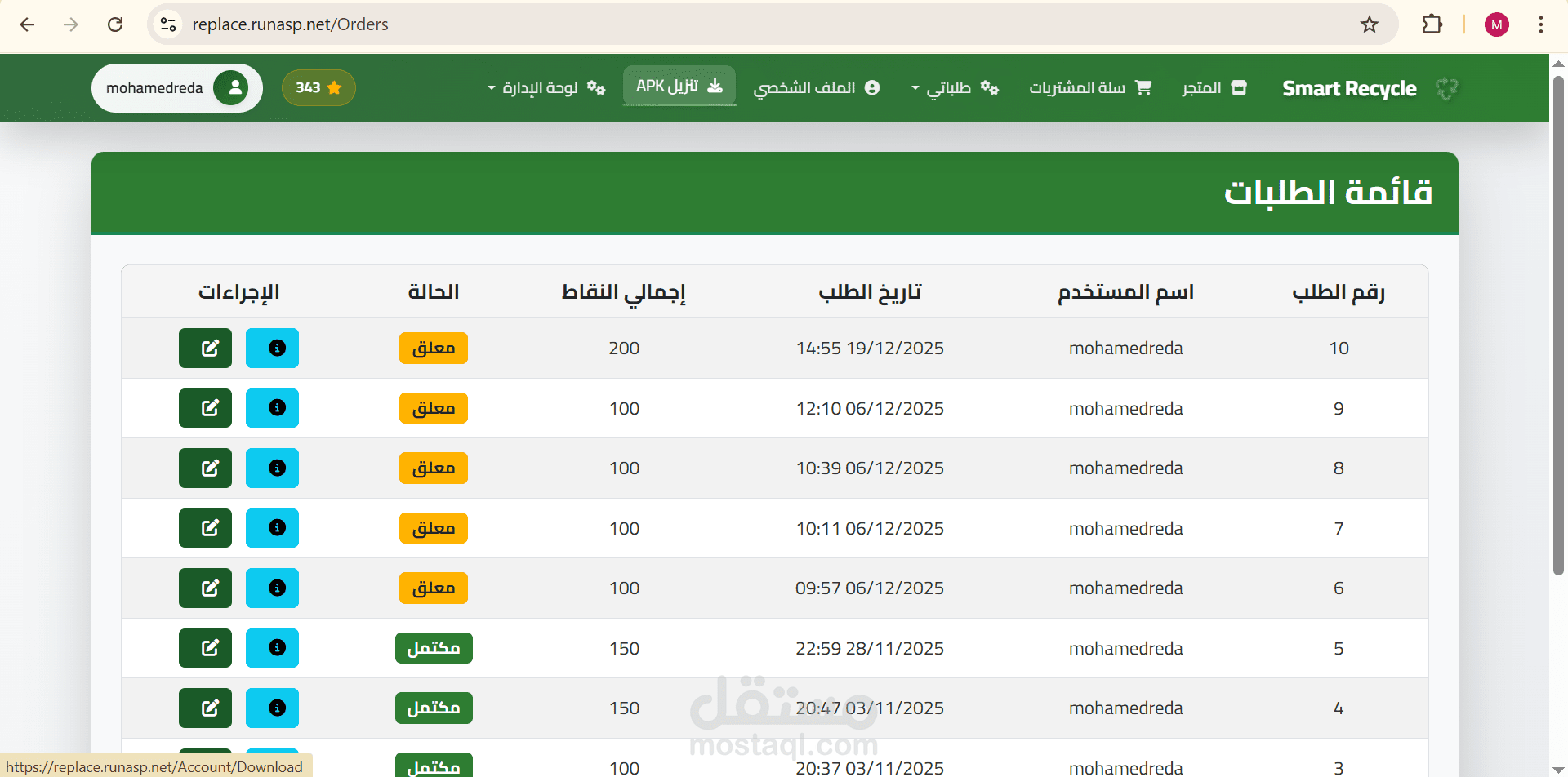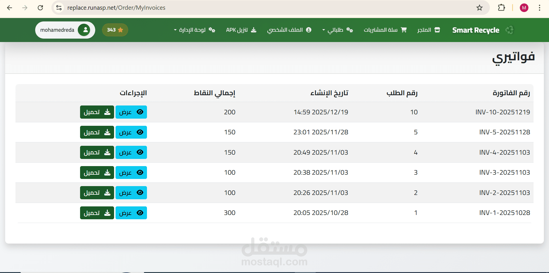 متابعة رصيد النقاط لكل مستخدم