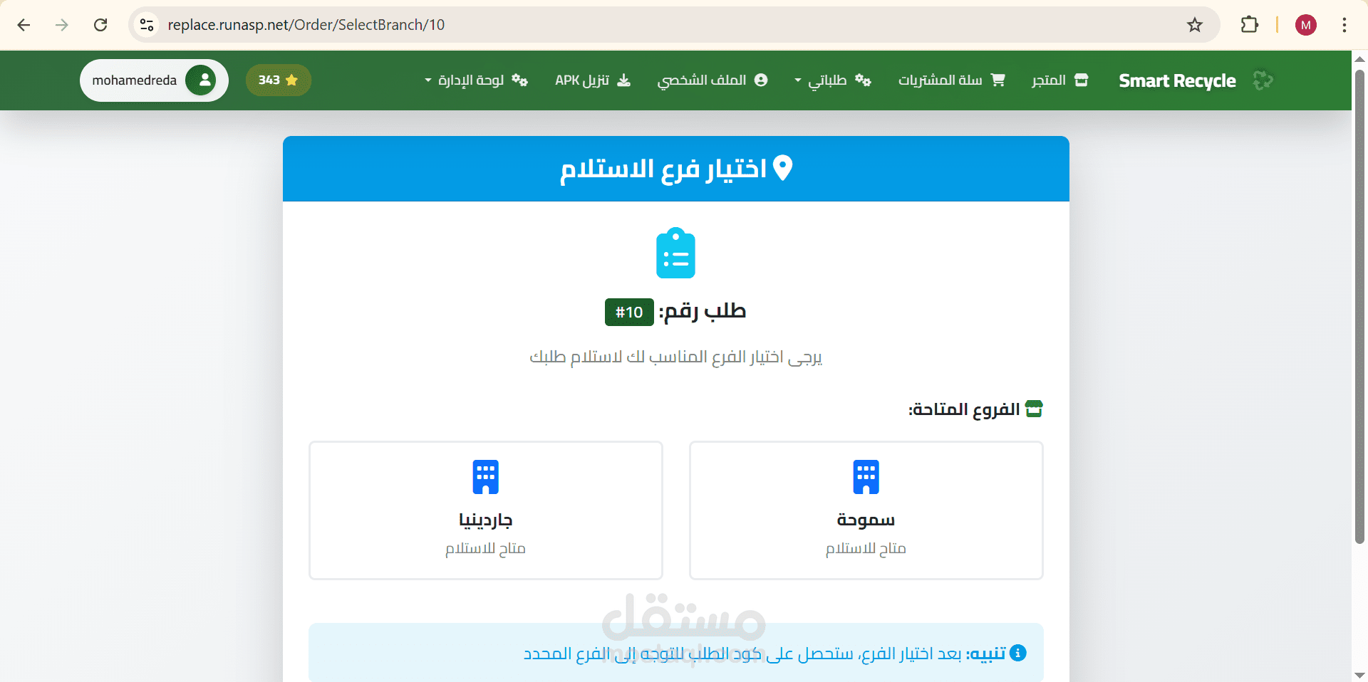 4. اختيار موقع الاستلام واستلام الطلب