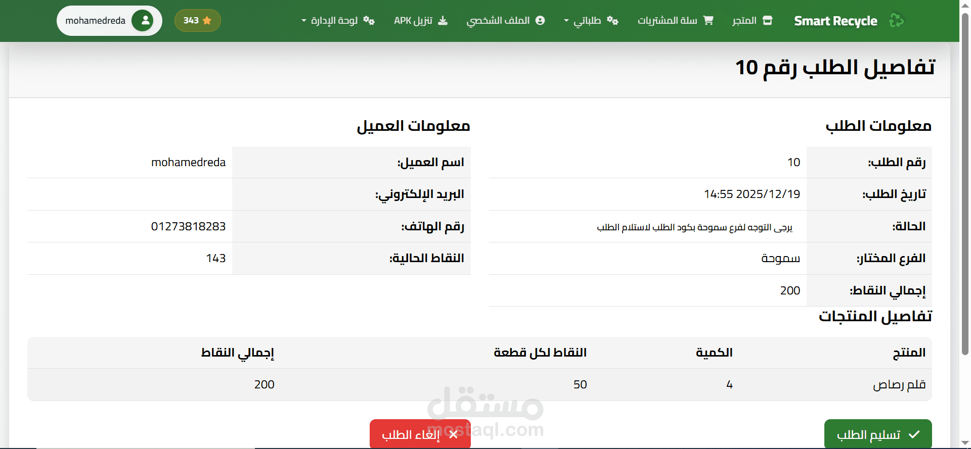 تأكيد تسليم الطلبات للمستخدمين