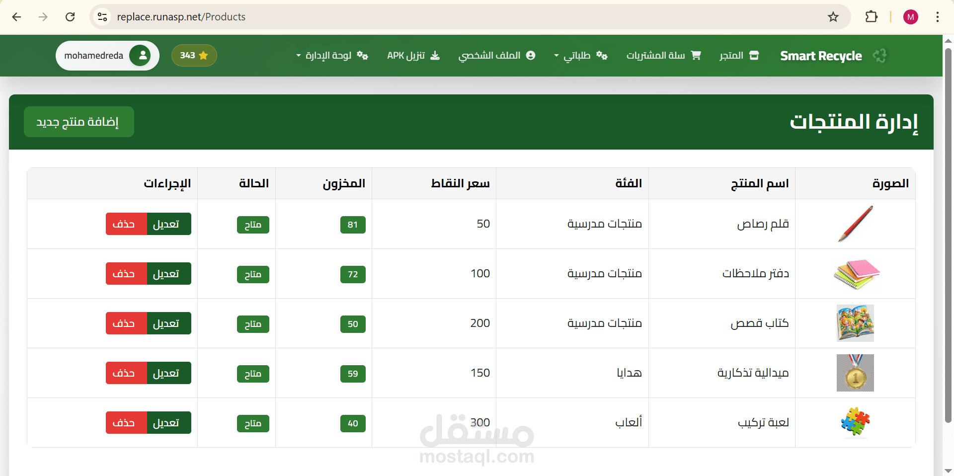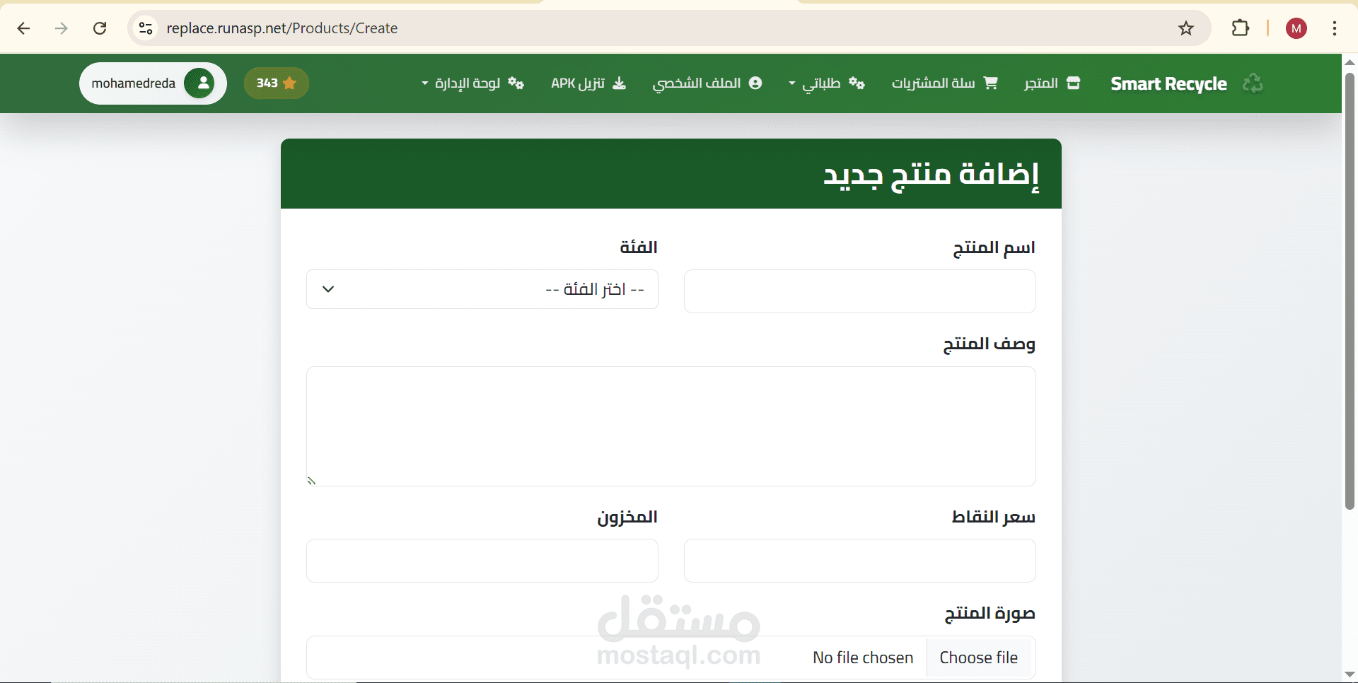 إضافة منتجات جديدة مع تحديد عدد النقاط المطلوبة