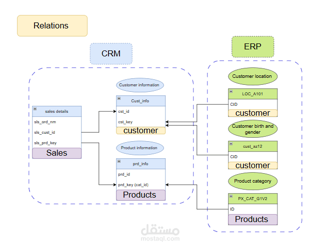 Two source systems: CRM and ERP, each providing structured CSV files.