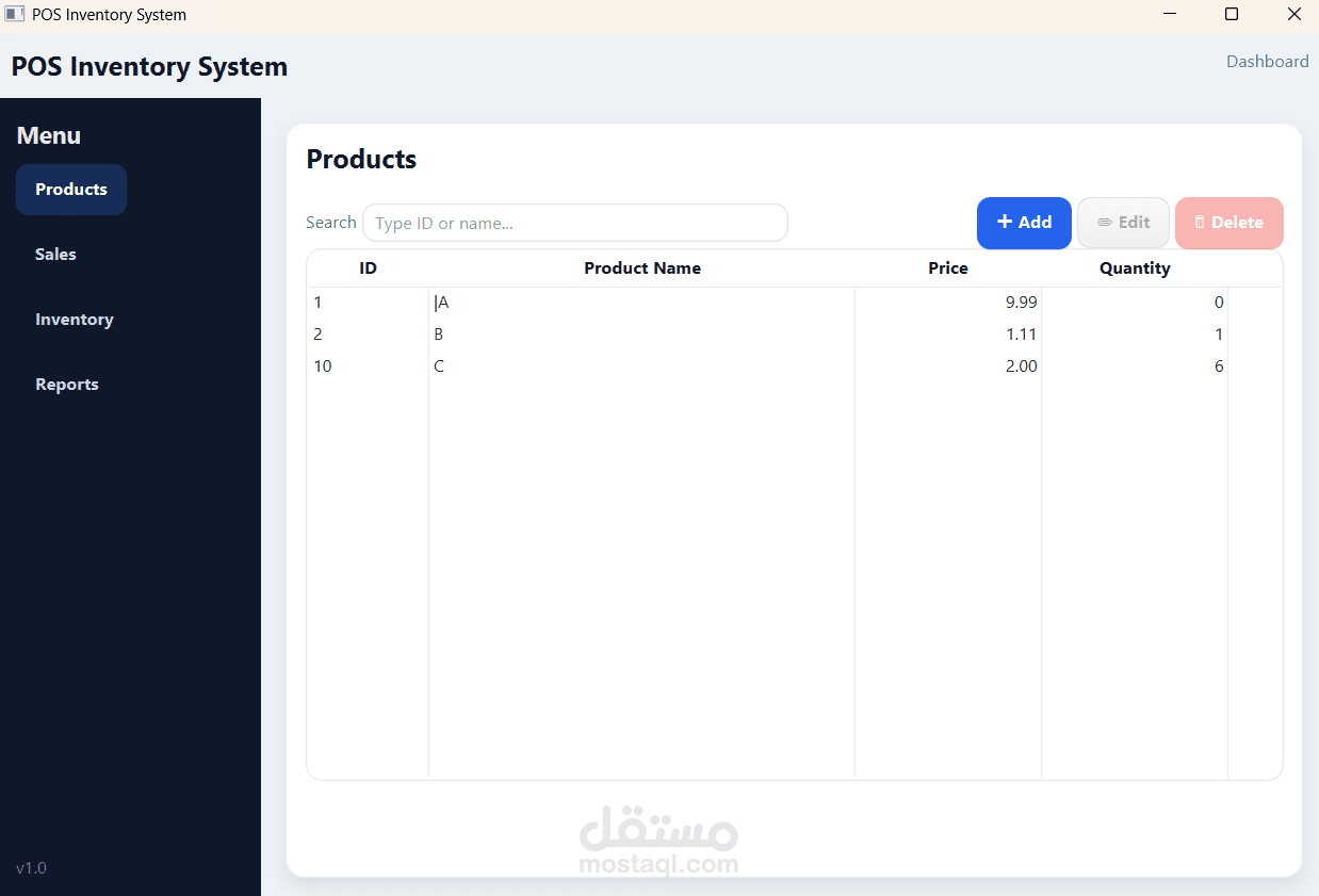 قمت بتطوير نظام مكتبي متكامل لإدارة المخزون والمبيعات (POS Inventory System) باستخدام Java و Oracle Database.