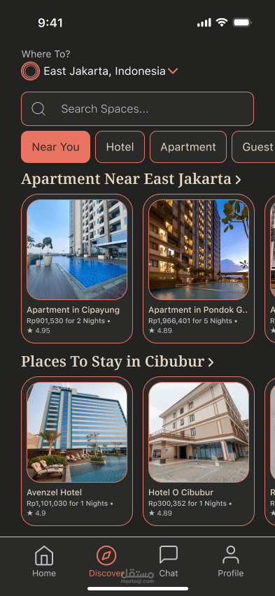 فلاتر بحث متقدمة حسب الموقع، السعر، ونوع المنشأة (شقة، فيلا، فندق).