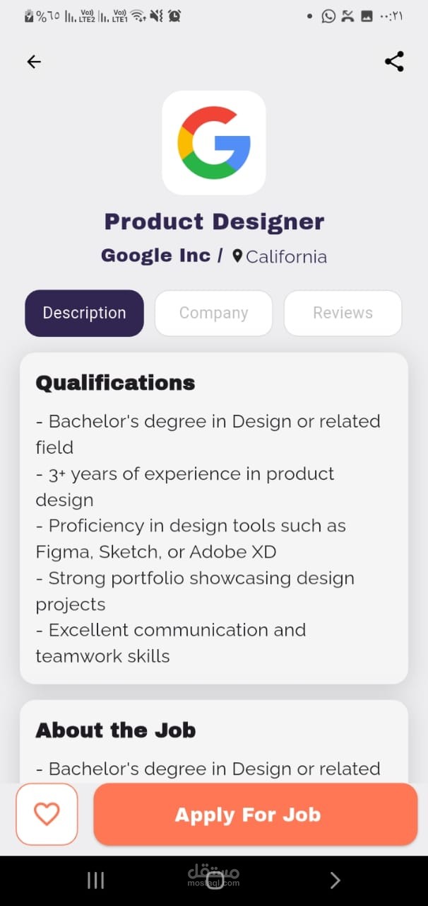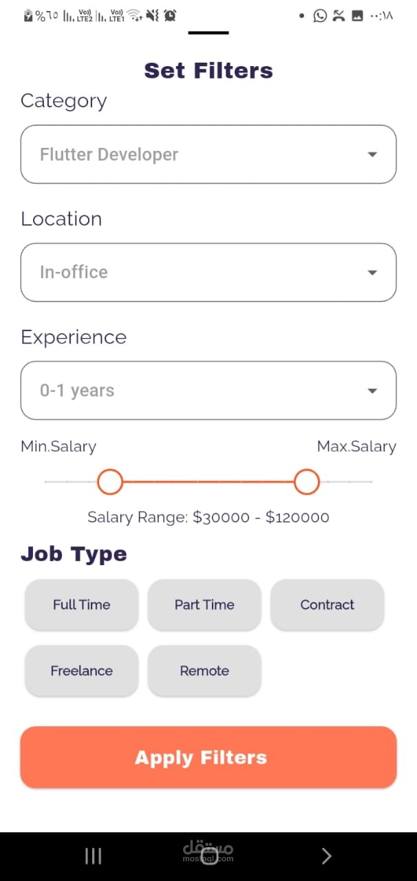 التطبيق يعمل على Android و iOS بكود واحد، ومناسب للشركات، منصات التوظيف، أو أي مشروع يستهدف تسهيل الربط بين الباحثين عن عمل وأصحاب الفرص.