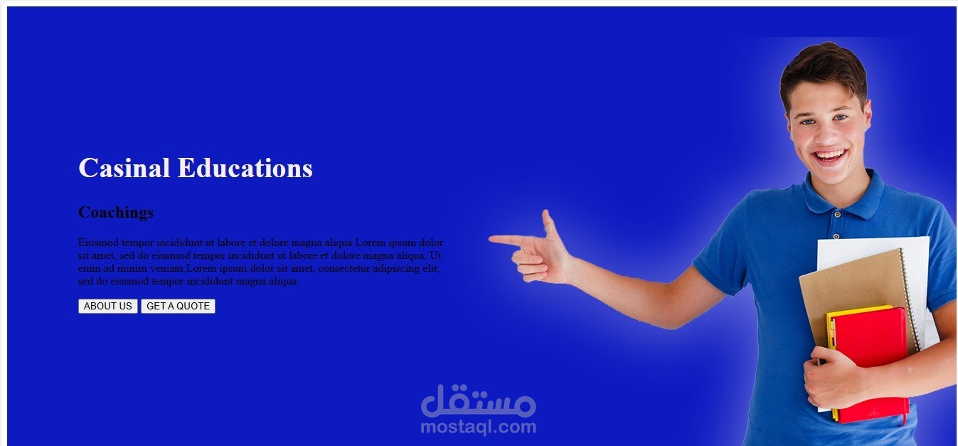 تصميم واجهة موقع إلكتروني احترافية باستخدام HTML وCSS، تتميز بتنظيم المحتوى بشكل واضح، وشريط تنقّل أنيق، وأزرار تسجيل ودخول جذابة. التصميم خفيف وسريع التحميل، ومناسب للمشاريع التعليمية والمواقع التعريفية.