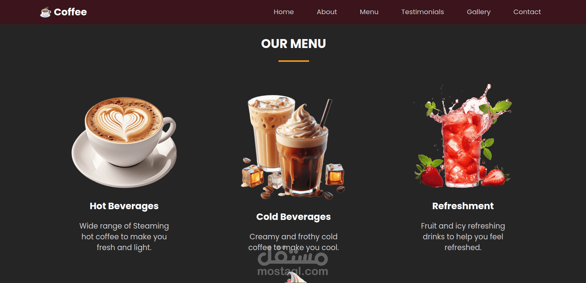 - هذا مشروع نموذج جيد لكفية استفادة مشروع صغير أو متوسط مثل مقهى راقي من التكنولوجيا للوصول الى عملاء محتملين أكثر وعرض نفسه بطريقة احترافية تتناسب مع حجمه ومستوى الخدمة التي يقدمها سواء للزبائن أو المستثمرين.