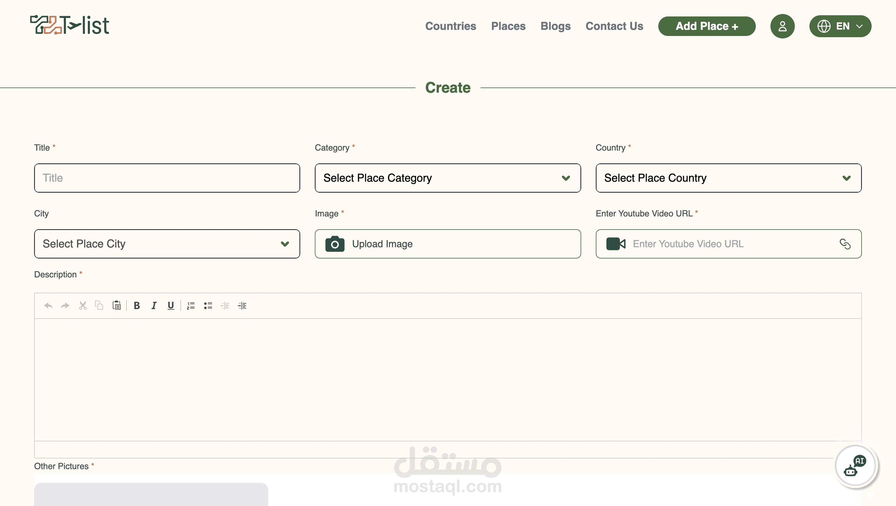 T-List منصة تواصل اجتماعي مخصّصة للسفر، تساعدك على اكتشاف الأماكن الرائعة، تقييمها، ومشاركتها مع الآخرين.