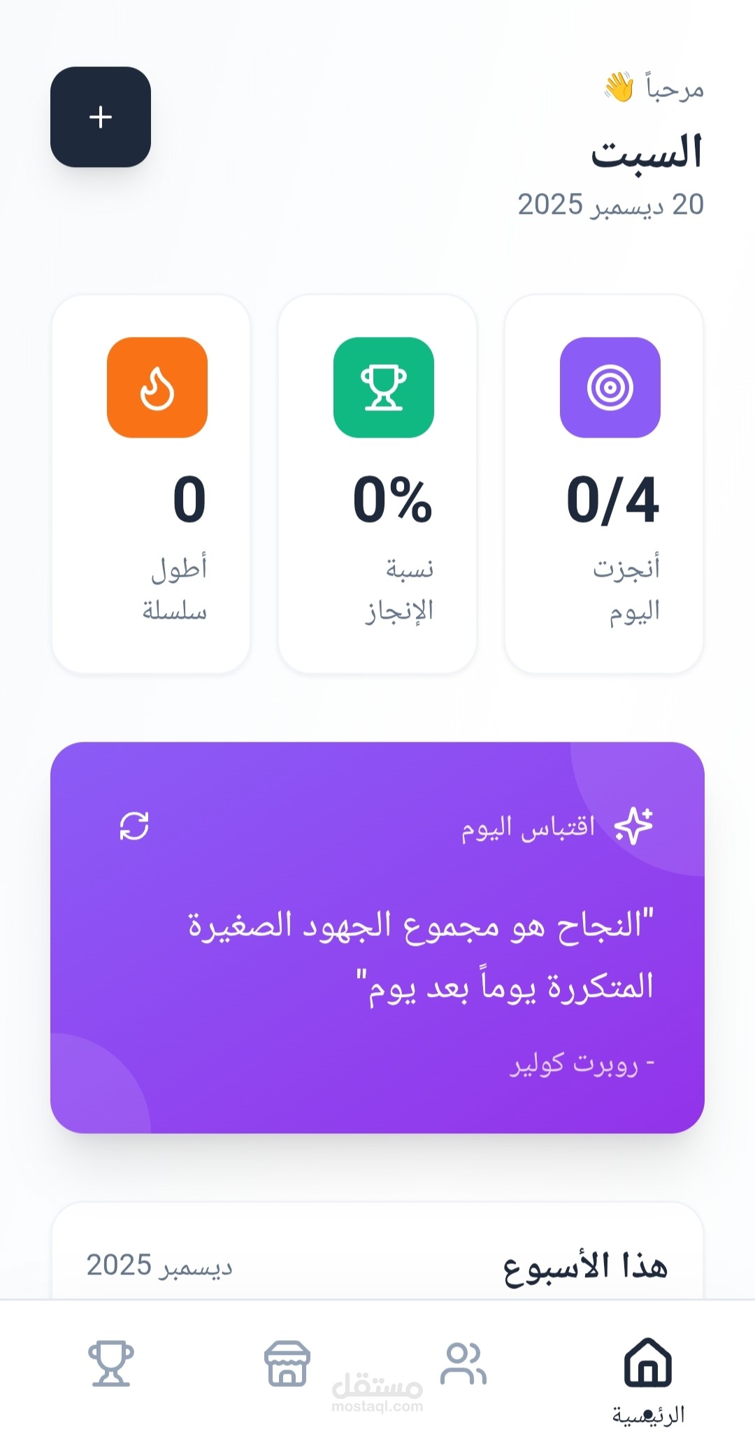 تطبيق ويب ذكي لتتبع العادات اليومية، صُمّم لمساعدة المستخدمين على تحويل أهدافهم إلى عادات ثابتة بطريقة بسيطة ومحفزة.