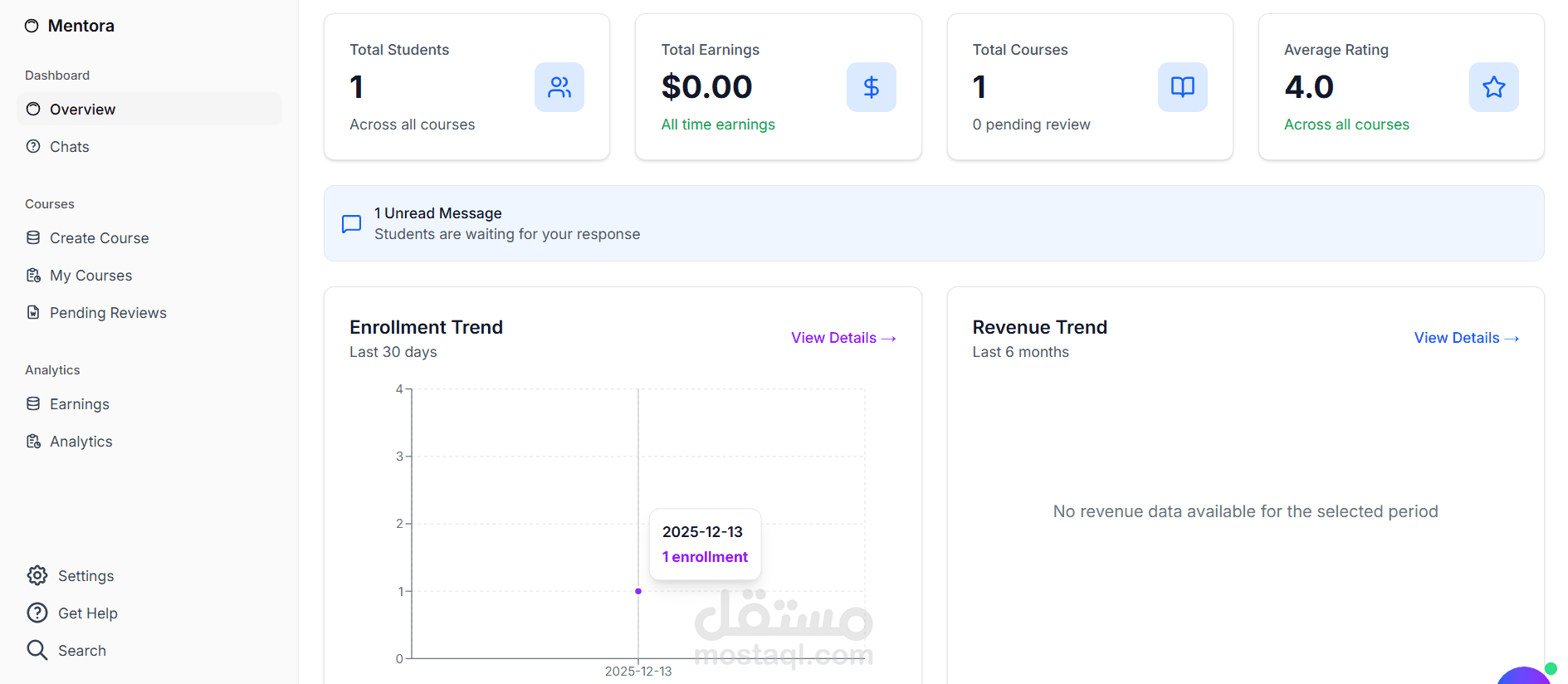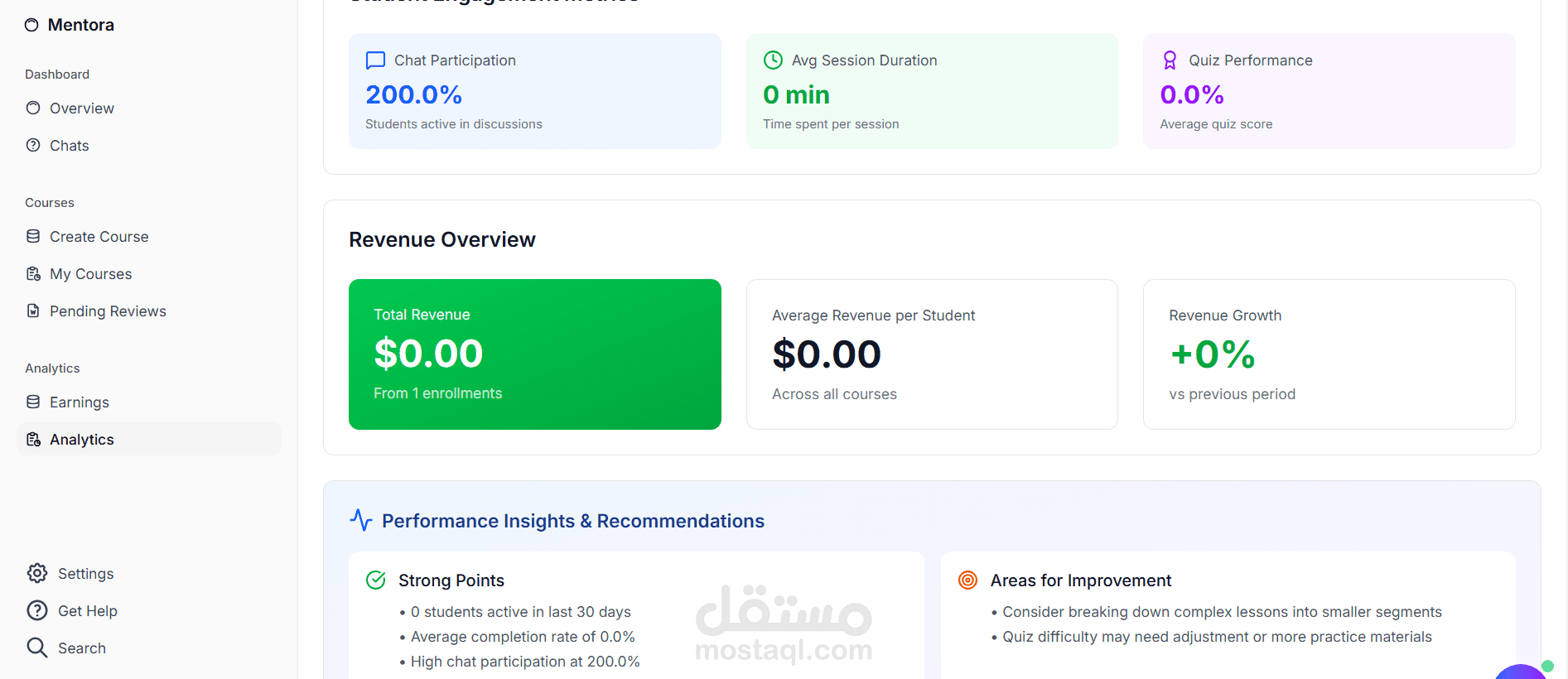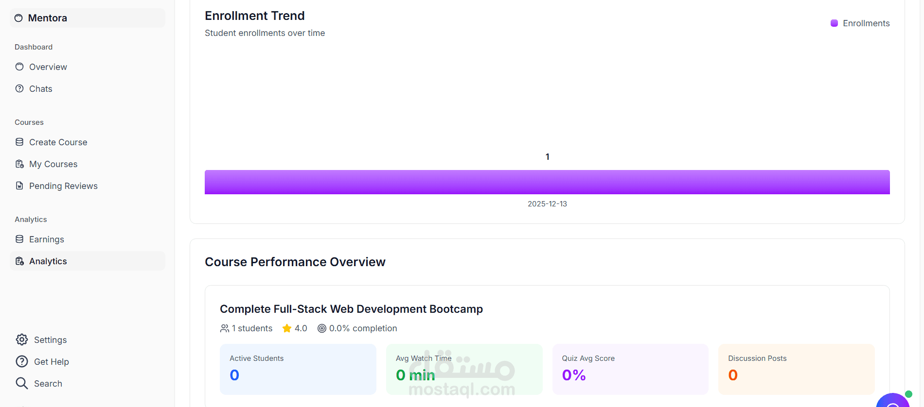 Mentora هي منصة تعليم إلكتروني (LMS) حديثة وقابلة للتوسع، تتيح إنشاء وإدارة وبيع الكورسات أونلاين بسهولة.