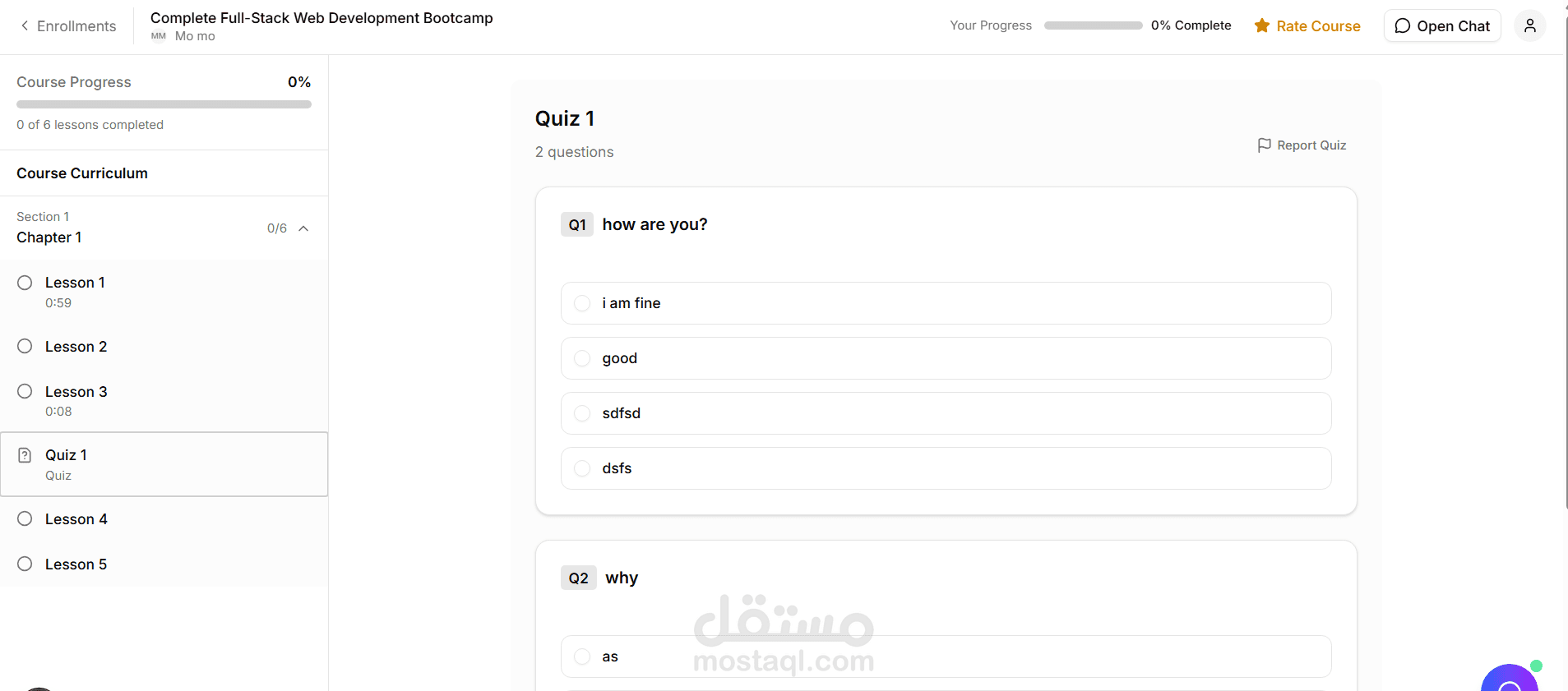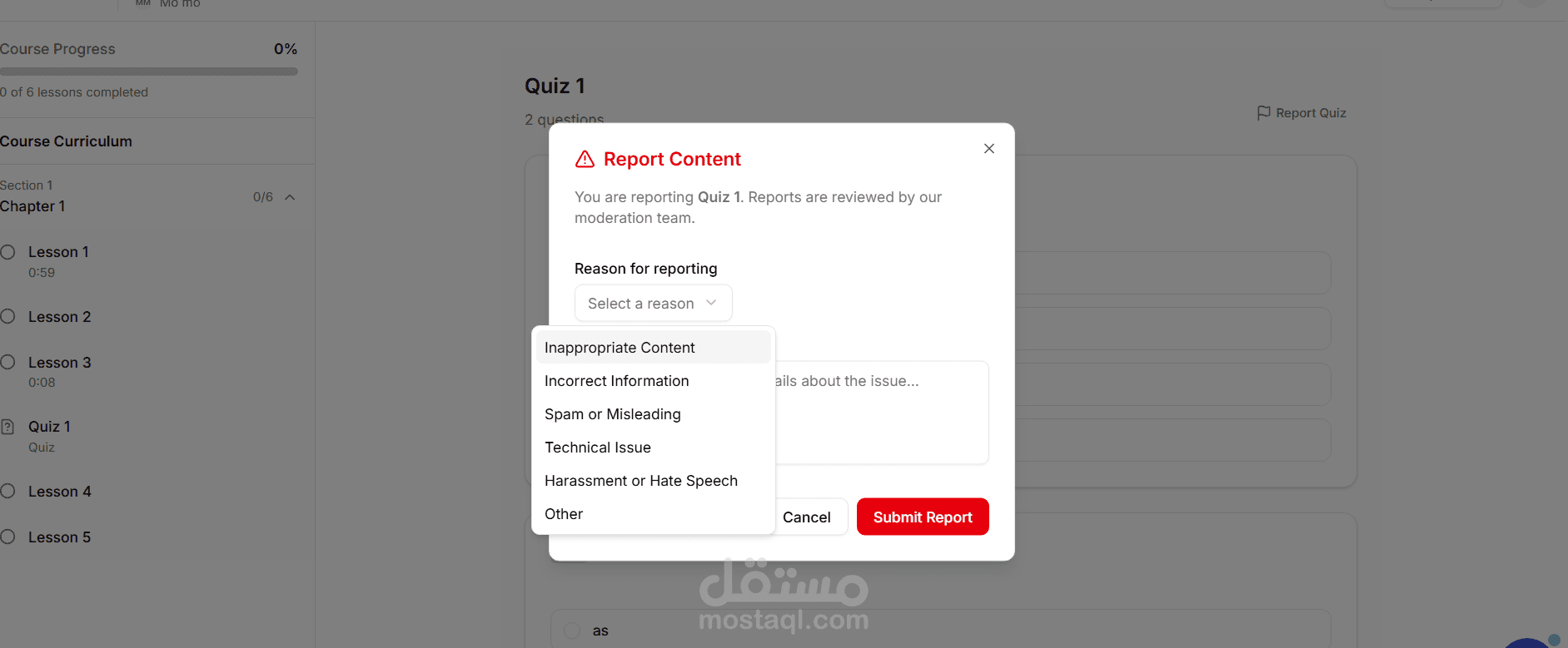 إنشاء وإدارة الكورسات (دروس، فيديوهات، اختبارات)