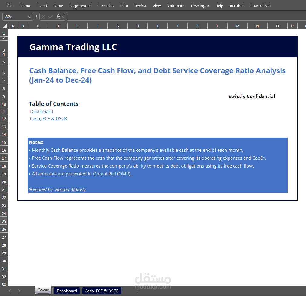 يعكس هذا العمل مهارات احترافية في التحليل المالي، إدارة السيولة، والتخطيط الاستراتيجي، ويوفر للشركة رؤية واضحة ودقيقة تساعد على اتخاذ قرارات مالية صائبة، مع ضمان المرونة التشغيلية والحفاظ على الاستقرار المالي.