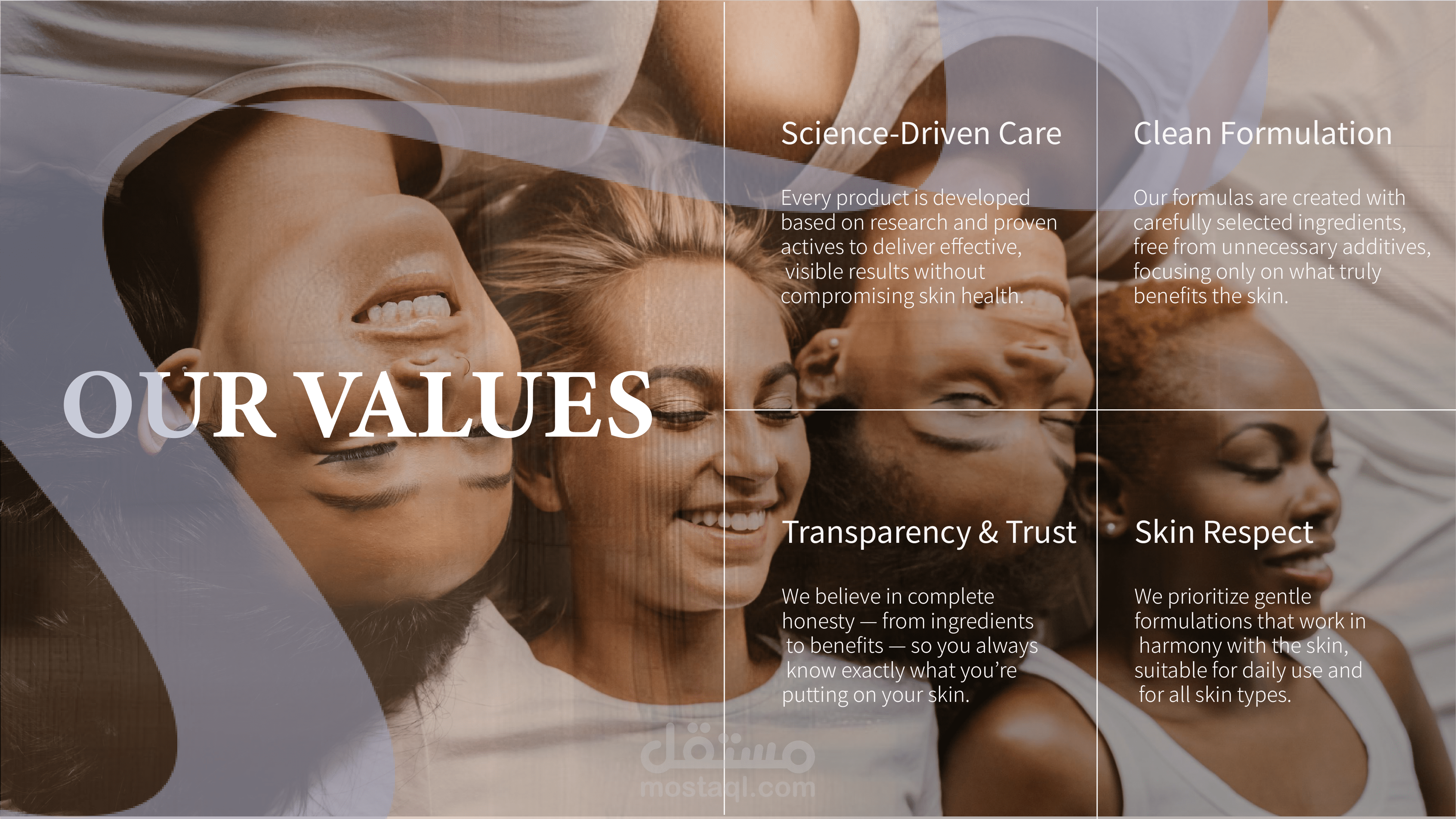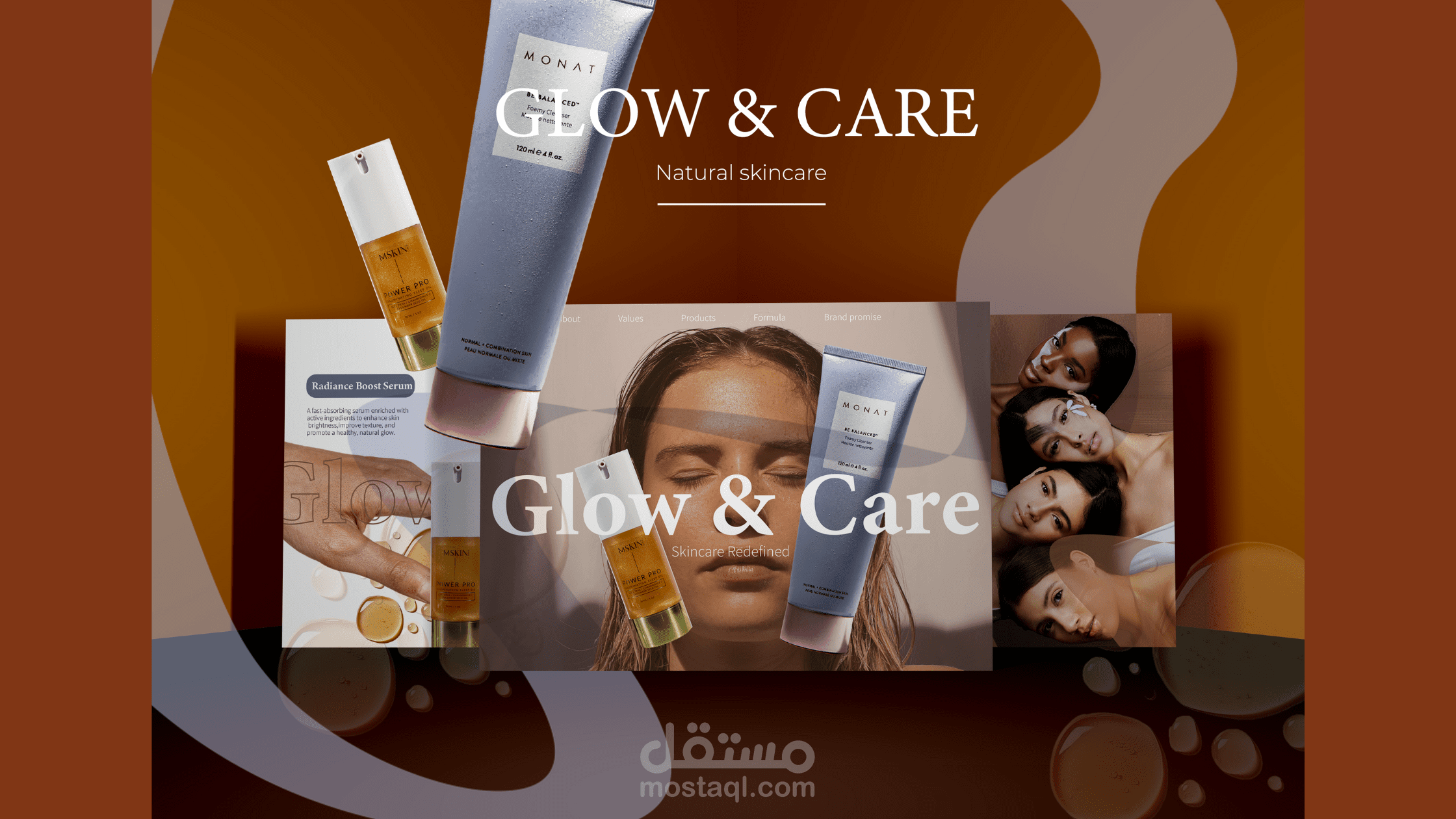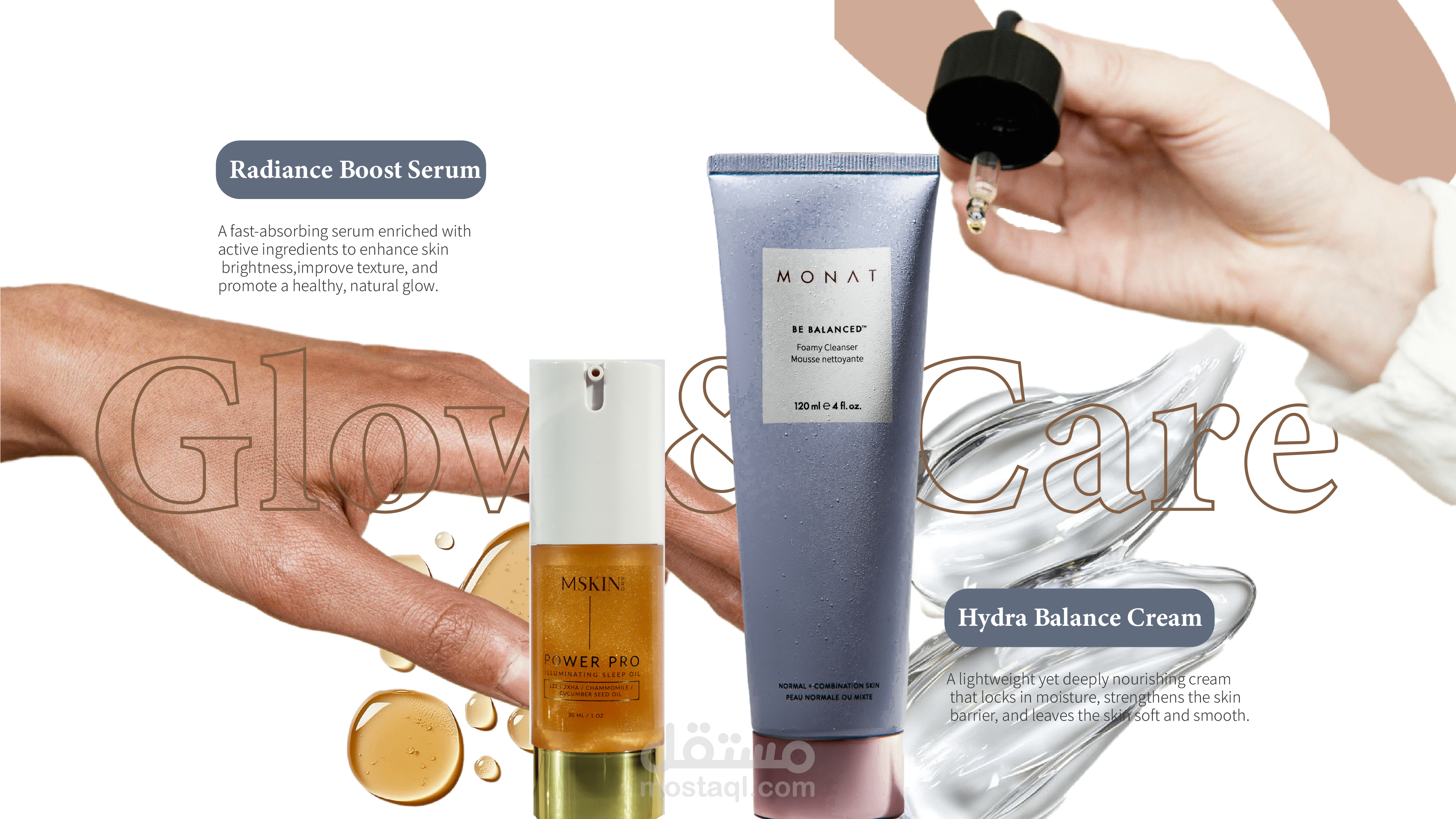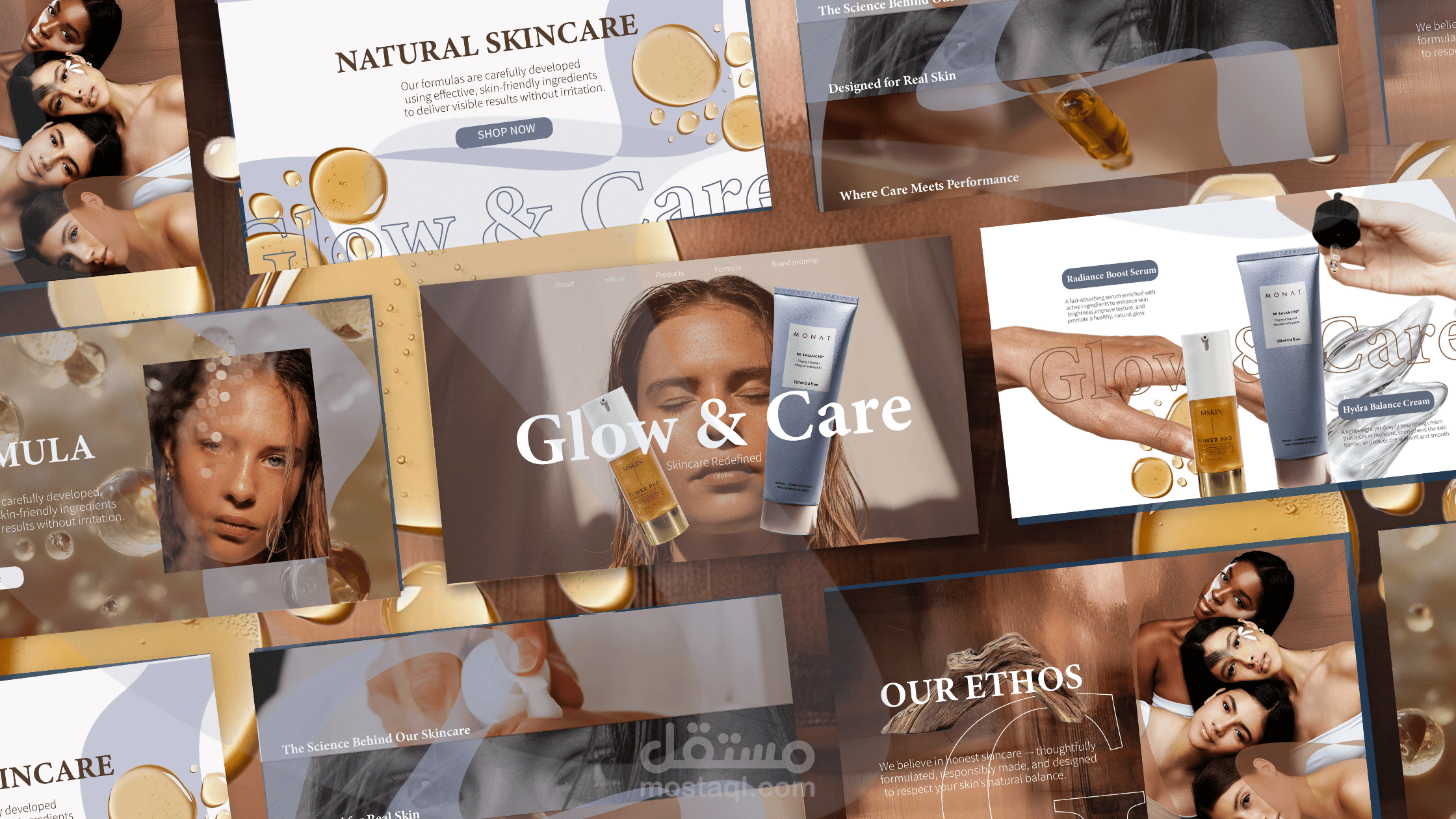 A minimal skincare visual branding concept focused on clean layouts, soft colors, and elegant typography. The