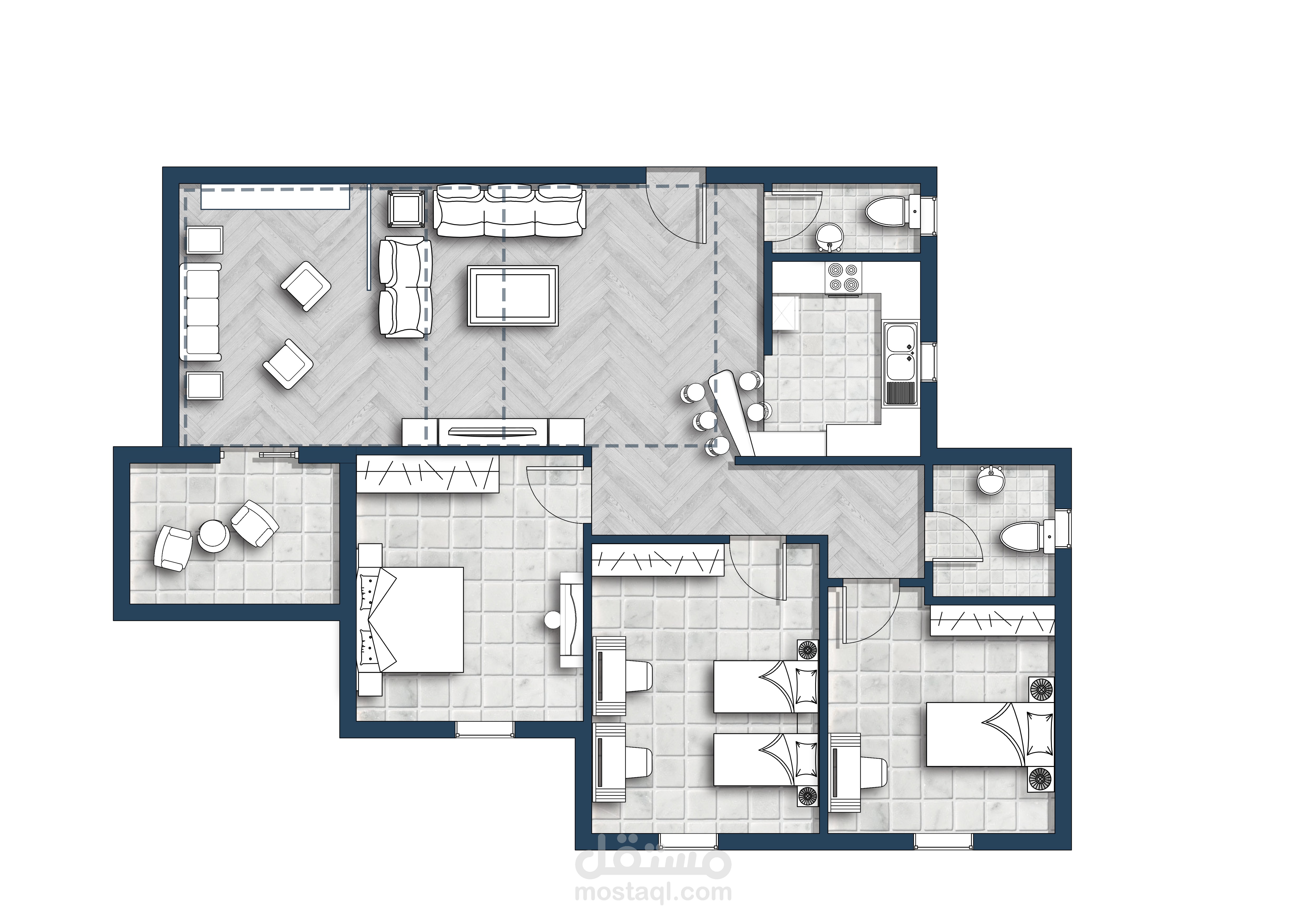 تصميم 2D لشقة سكنية