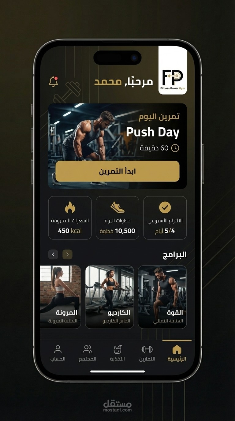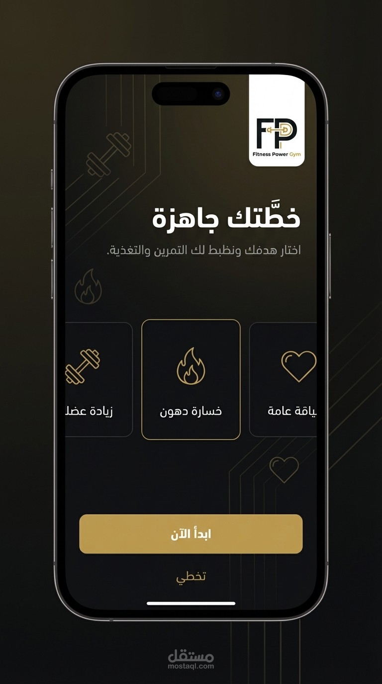 Fitness Power Gym هو تطبيق موبايل لإدارة تجربة الجيم بشكل كامل، يساعد المستخدم على متابعة تمرين اليوم، اختيار البرامج التدريبية، تسجيل الأوزان والتكرارات، ومراقبة التقدم أسبوعيًا. التطبيق يوفر أيضًا قسم التغذية لحساب السعرات والماكروز (Protein/Carbs/Fat) وتنظيم الوجبات اليومية، مع إشعارات للتذكير بالتمارين وشرب المياه ومواعيد الوجبات.
