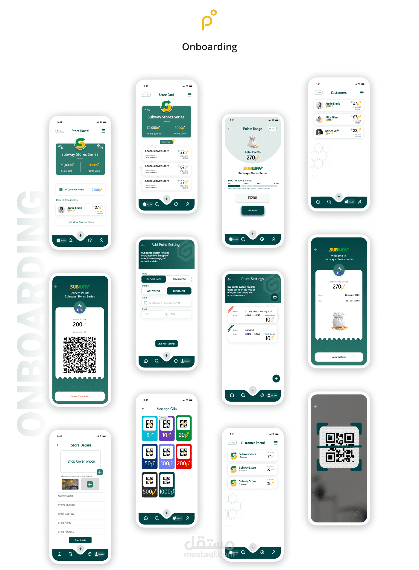 تطبيق العميل: عرض النقاط عبر عدة متاجر كبرى، استبدال رموز QR، وتتبع المكافآت.