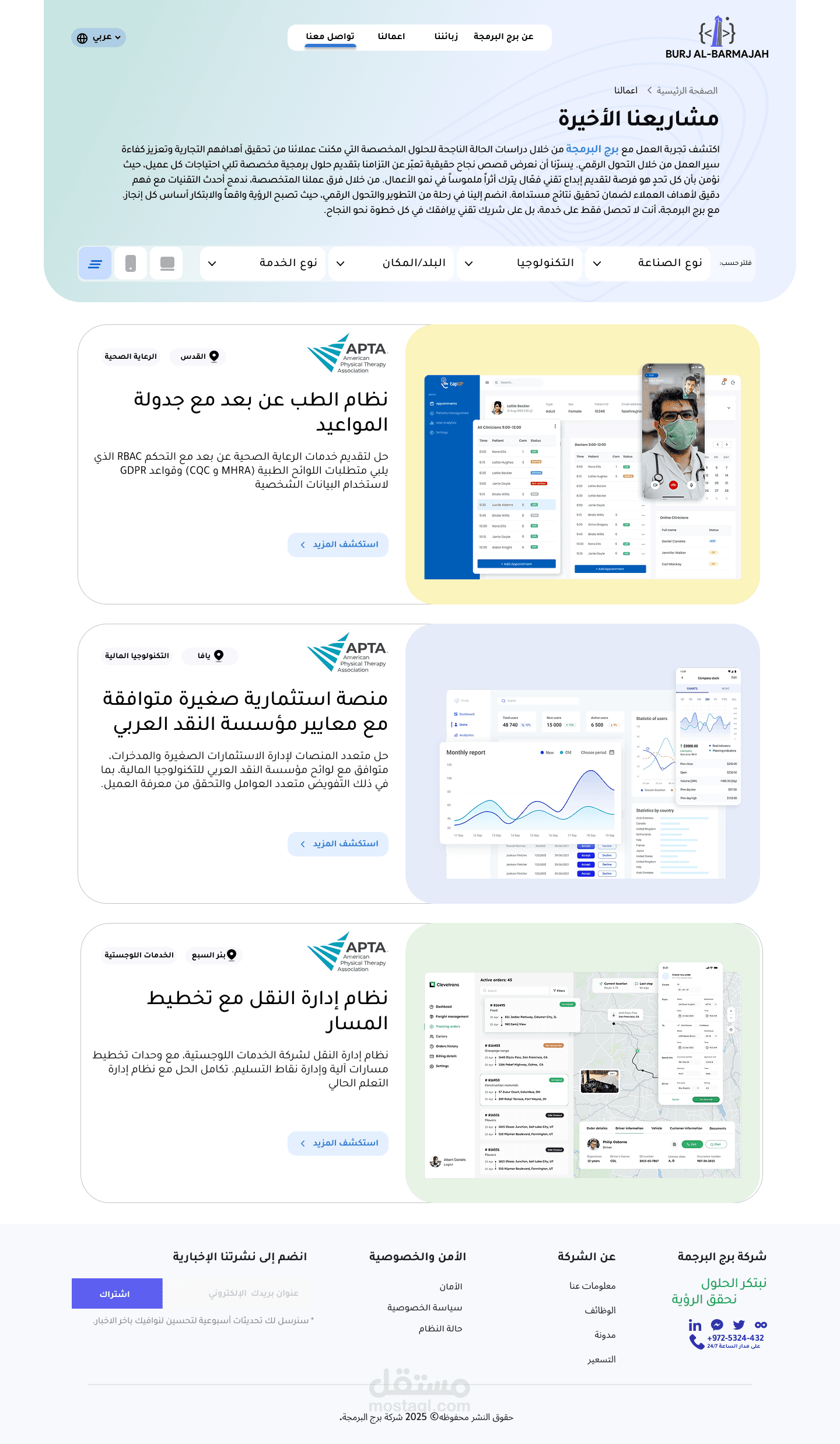 موقع يركّز على تطوير حلول برمجية متكاملة تجمع بين الأداء العالي والتصميم الاحترافي، لمساعدة الشركات على تحويل أفكارها إلى منتجات رقمية ناجحة وسهلة الاستخدام.