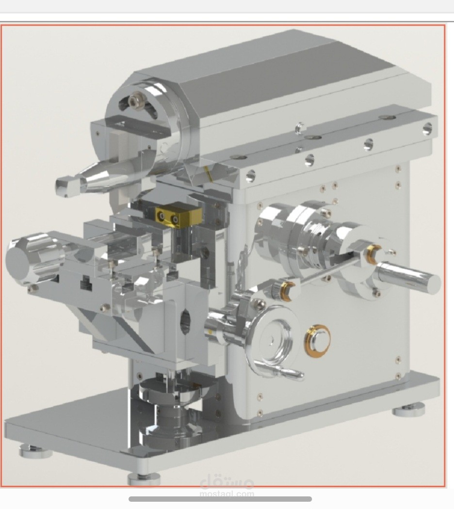 "نموذج ثلاثي الأبعاد متكامل لماكينة القشط، تم تصميمه بدقة عالية باستخدام SolidWorks. يركز التصميم على: