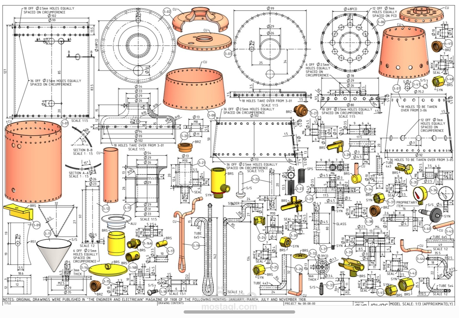 "مشروع نمذجة ميكانيكية متكامل يحاكي الآلات البخارية في العصر الصناعي. تم بناء هذا النموذج باستخدام SolidWorks، مع التركيز على التفاصيل الدقيقة مثل: